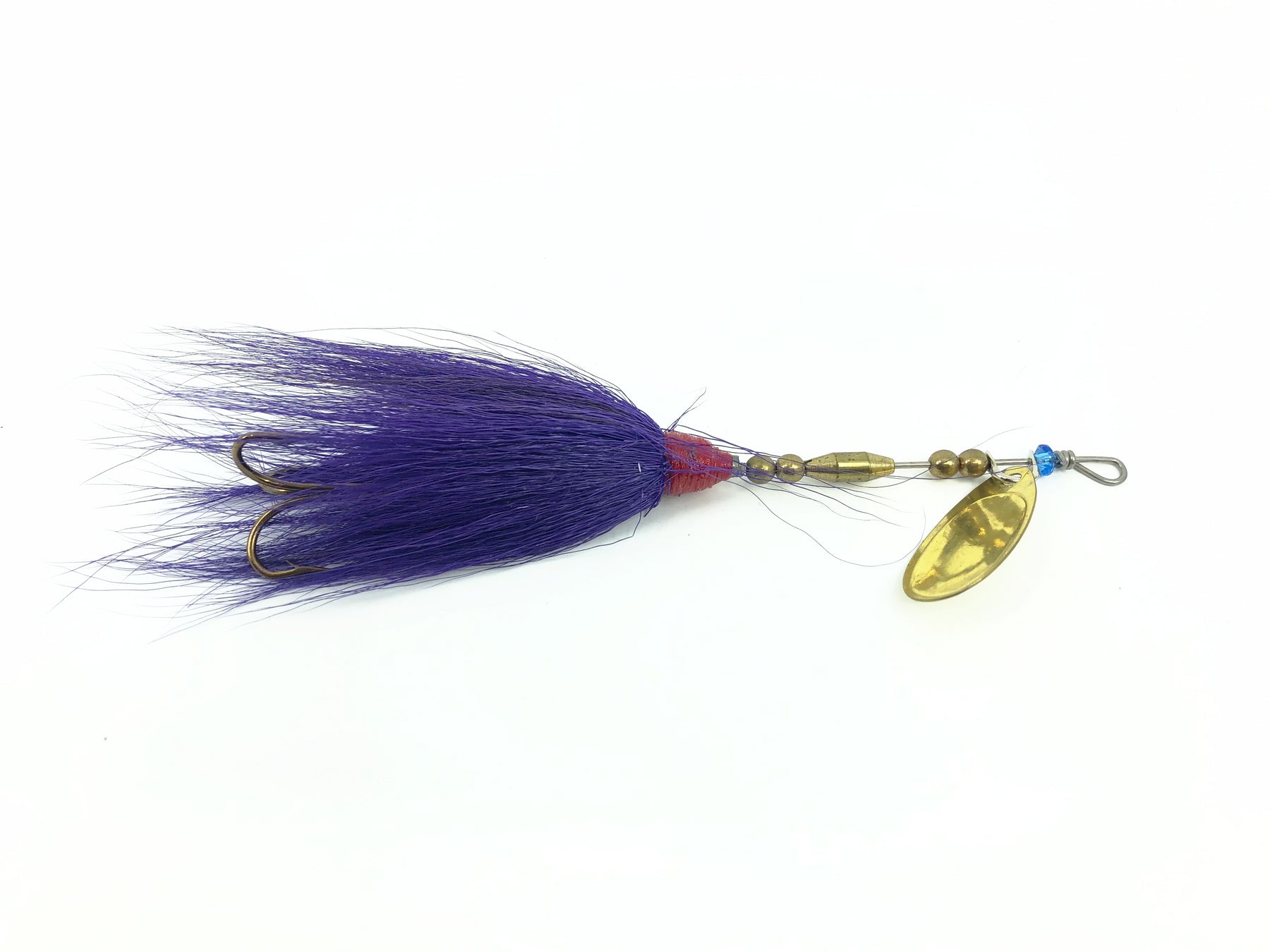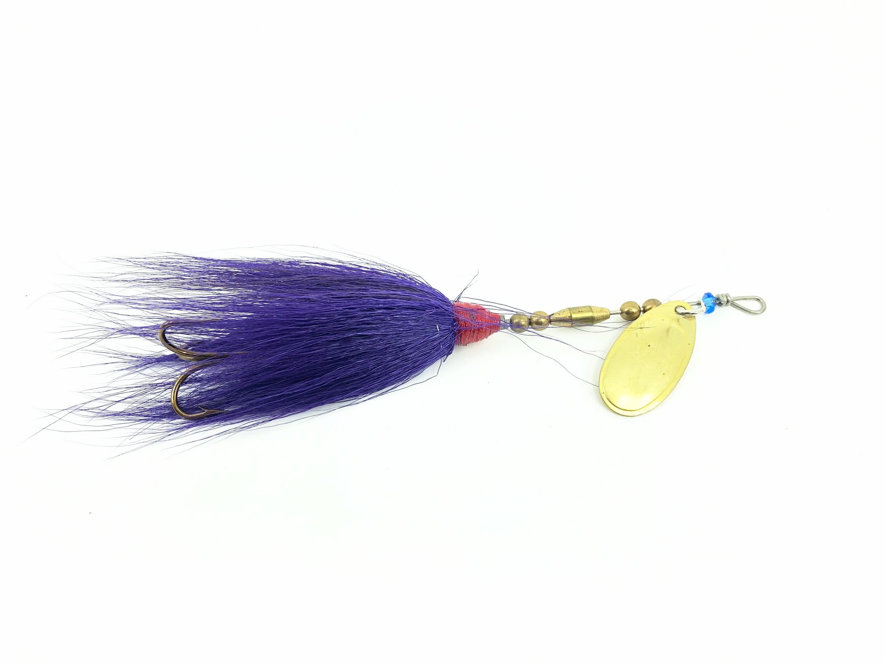Pike Bucktail Spinner, Gold Blade/Purple Tail Color. Great spinner here from an unknown maker. Lure is about 6 1/4" long from hook to body and weighs about 0.4oz. Lure is used but is in great condition. Fish this deal!