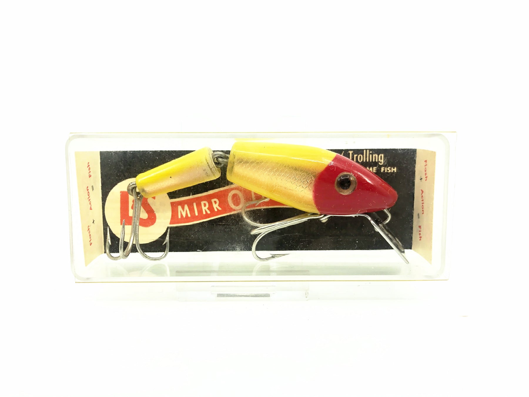 L & S 25M Minnow, #12 Red Head/Yellow Body/Gold Scale Color w/Box. Comes with uncommon plastic box and sleeve. About 3 1/8" long. Lure is new in box but has some waxing and the box is in great condition, see photos. Fish or collect a classic lure.