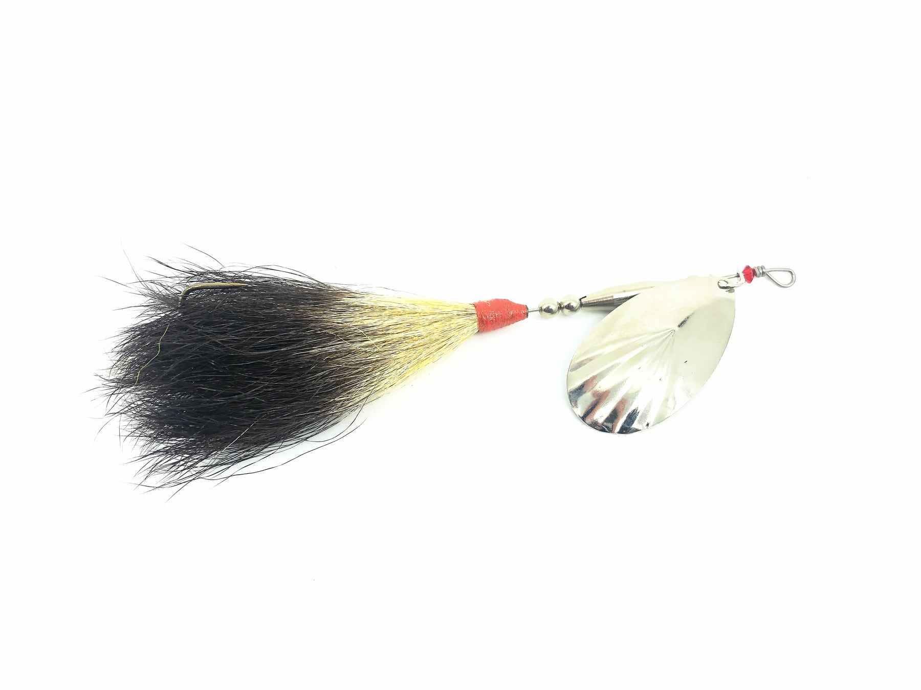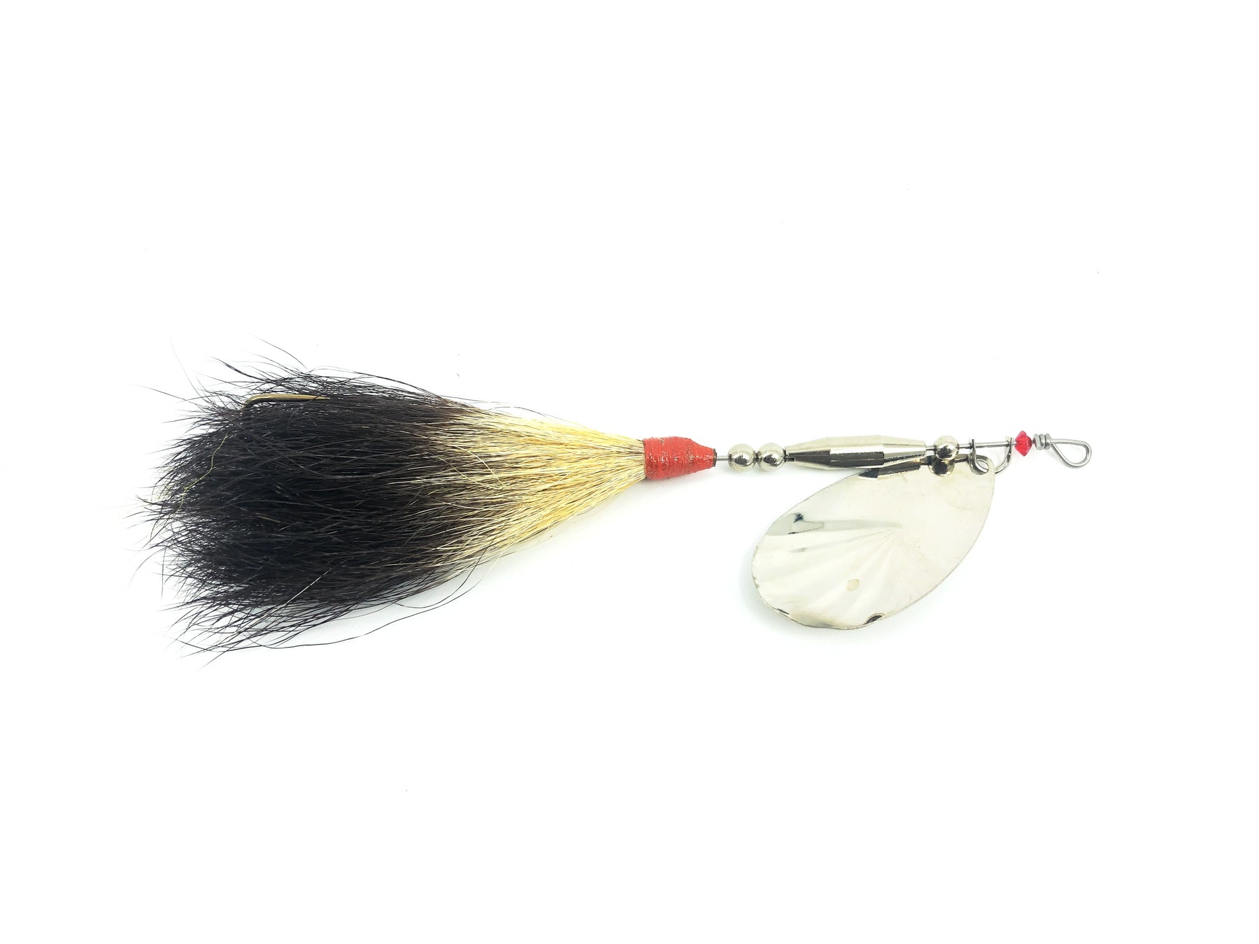 Musky Bucktail Spinner, Silver Blade/Black & White Tail Color. Great spinner here from an unknown maker. Lure is about 7" long from hook to body and weighs about 1oz. Lure is used but is in good condition. Fish this deal!