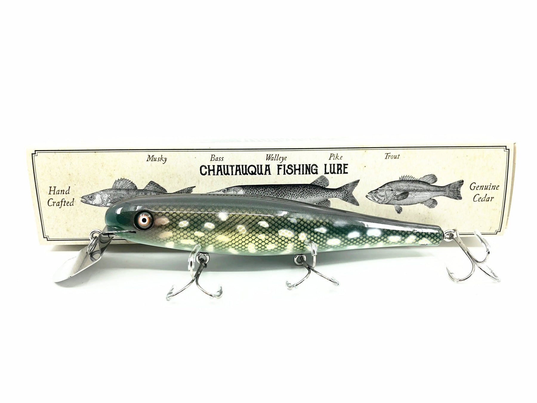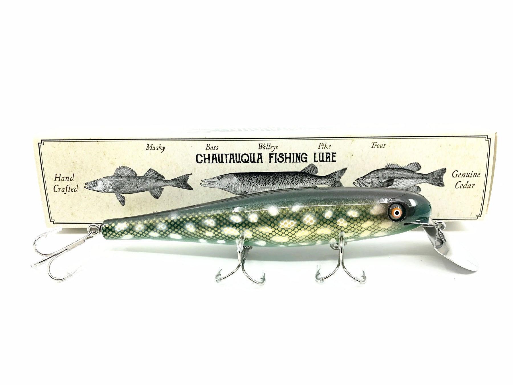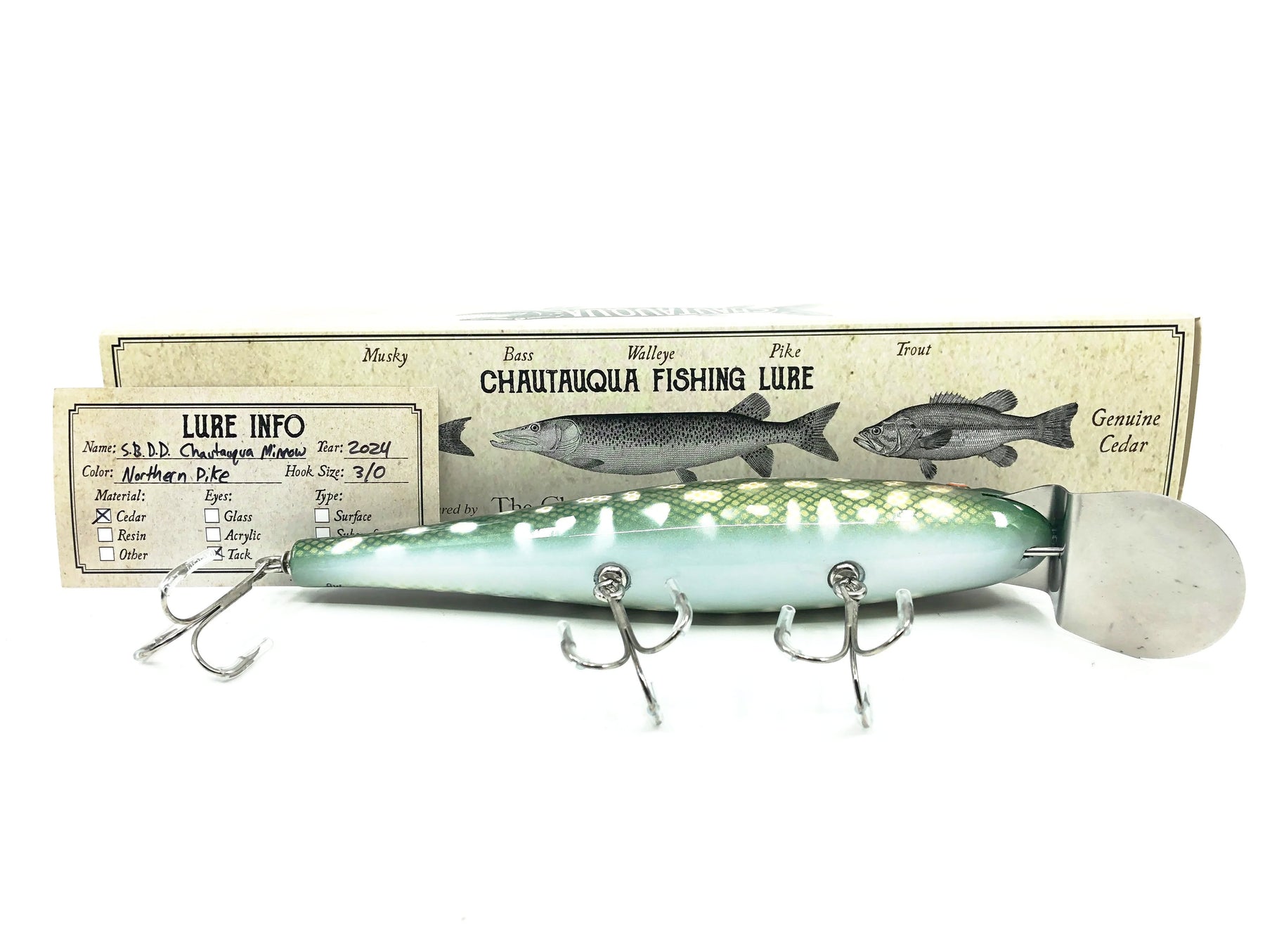 Solid Body Chautauqua 8" Minnow Deep Diver, Northern Pike Color. Get this very special bait and add to your collection or better yet take fishing! That's what it was made for!