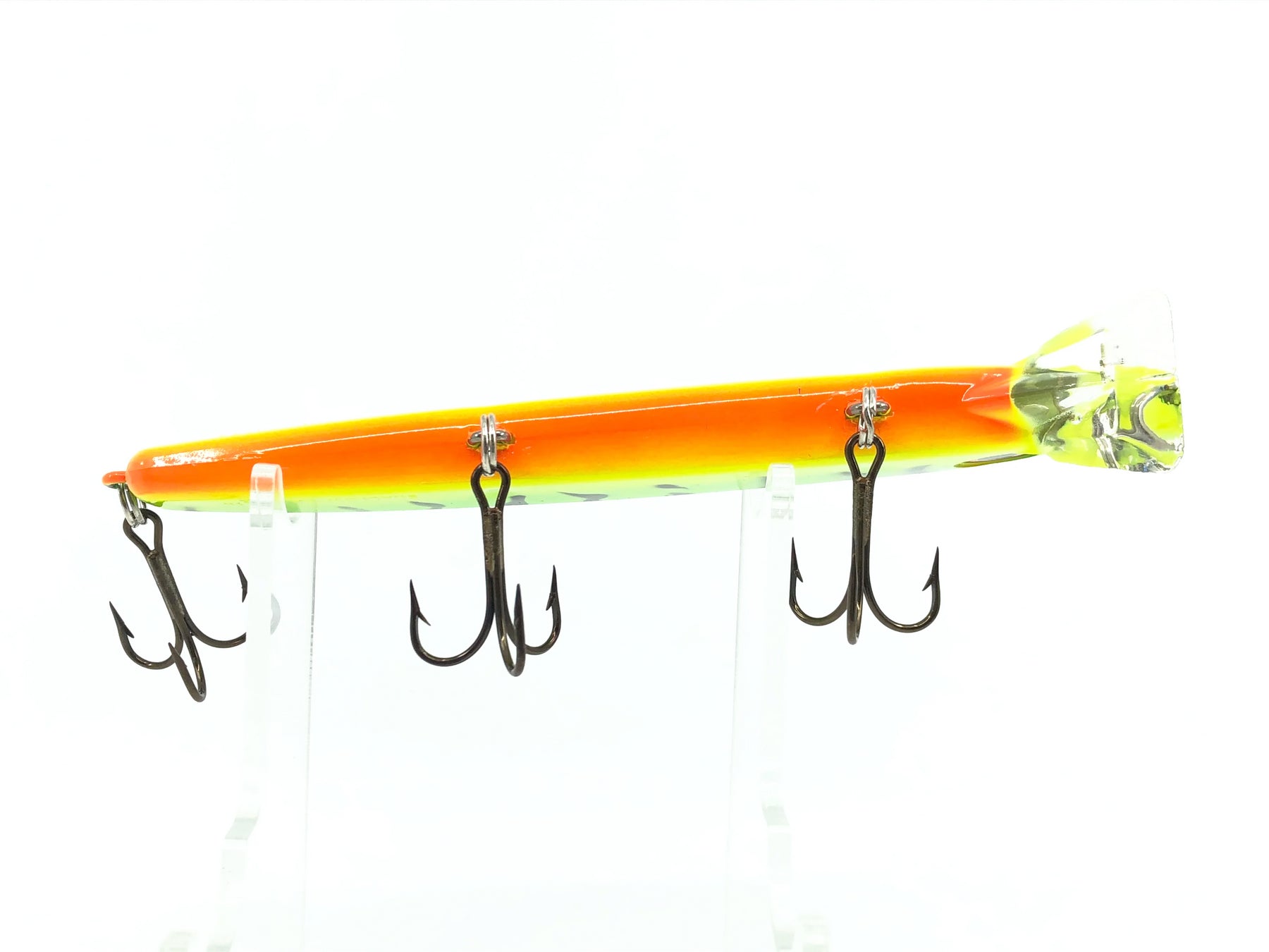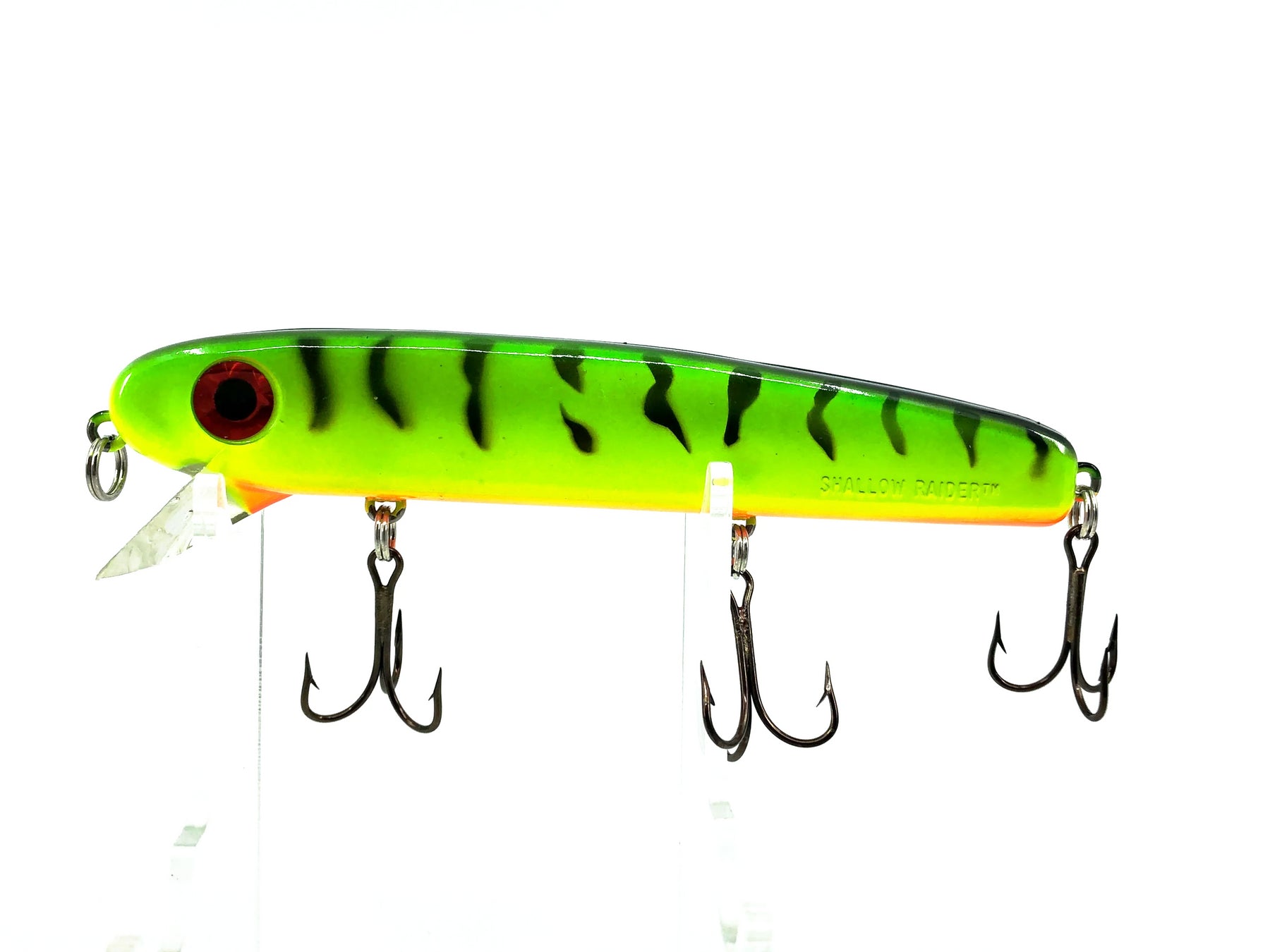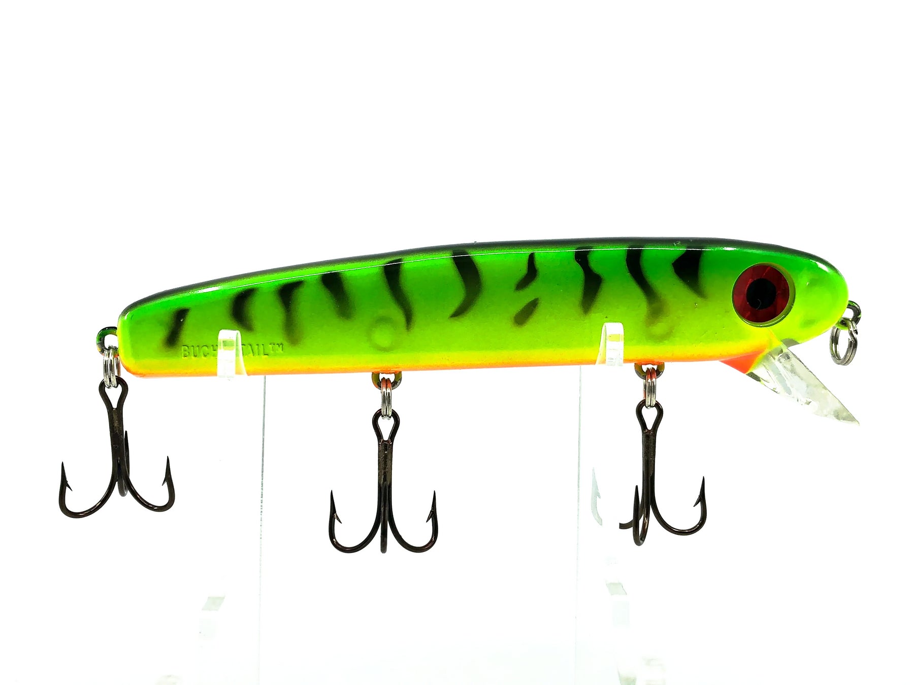 Joe Bucher Tackle Co. Buchertail Shallow Raider 5", Firetiger Color. Classic Wisconsin lure brand here. About 5 5/8" long. Lure is used but appears to have never been fished and is in overall great condition.