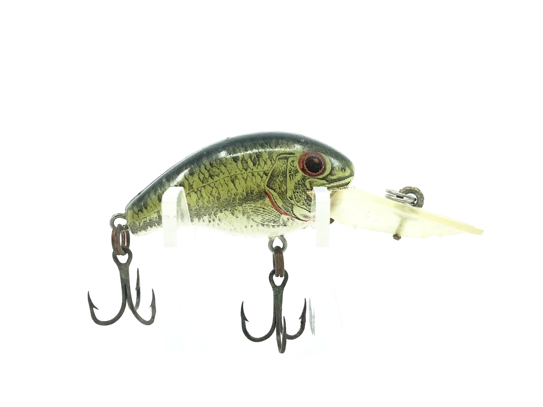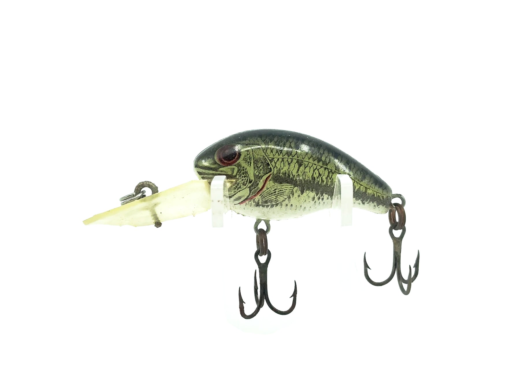 Rebel Deep Teeny R Naturalized Bass Color. About 1 5/8" long body not including lip. Used with some minor wear but overall in good condition, see photos. Great classic Rebel here. Fish or collect.