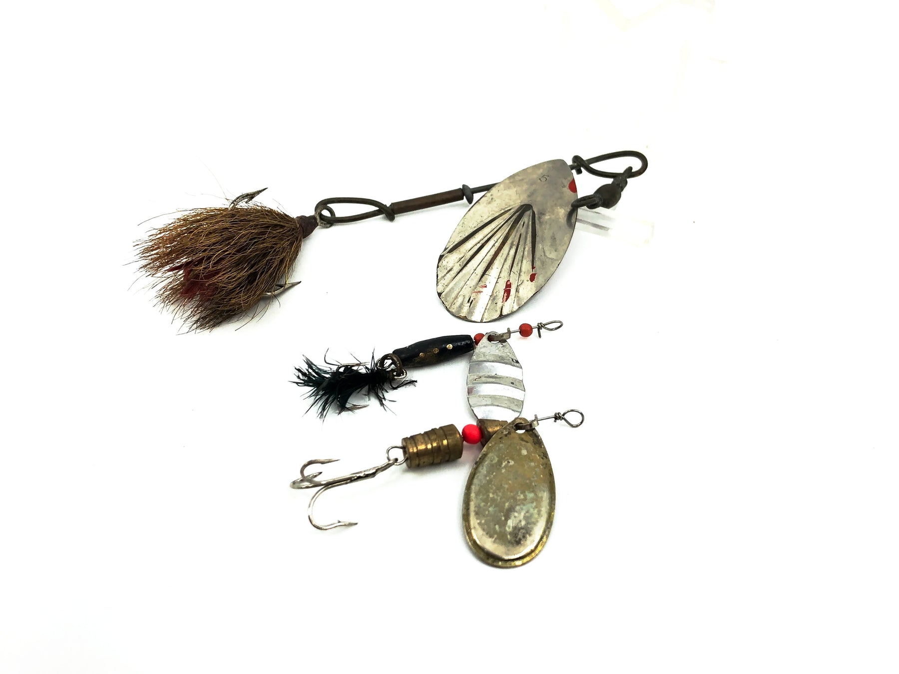 Vintage Spinner Pack. Great deal on some iconic spinners. Includes two inline spinners and one older fluted spinner. These lures are all used with some wear but overall in good condition. Classic lures that can be a staple in any fishermen's tacklebox. See photos.