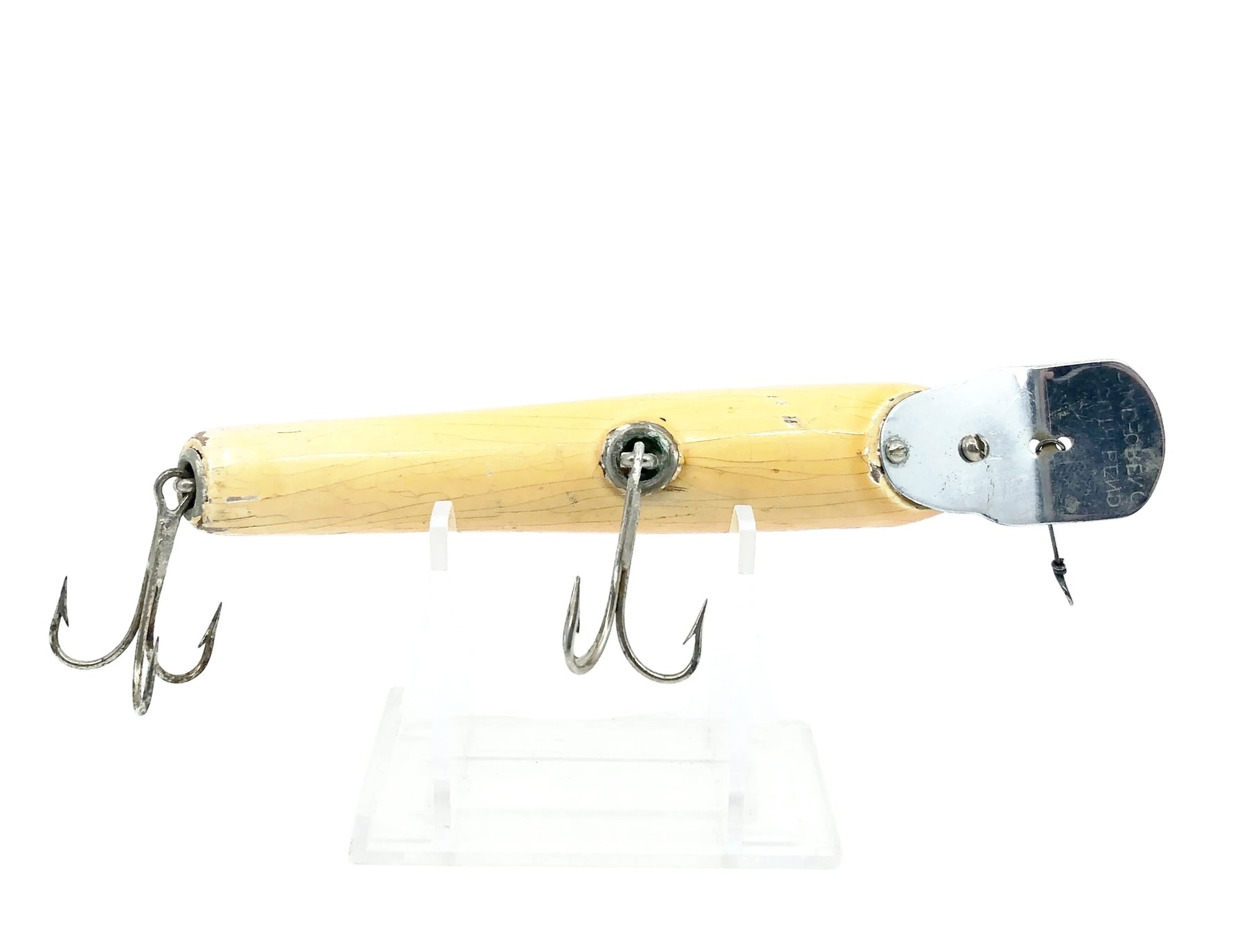 South Bend Pike-Oreno 957, Rainbow Color. Early glass eyed version. Lure is used with some wear and marks but still in good condition. About 4 1/2" wood body. See photos and add to your collection.