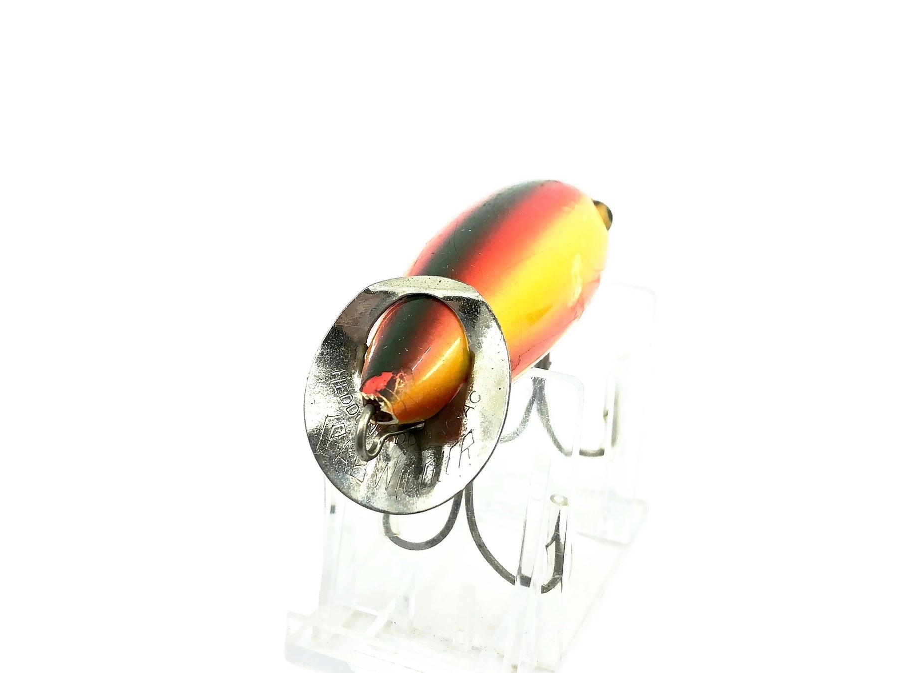 Heddon 1900 Baby Crab Wiggler, #1 Rainbow Color. Lure body is about 3 1/8". Wooden lure, glass eyes. This Wiggler has some minor wear and marks but this is in overall good condition. See photos.