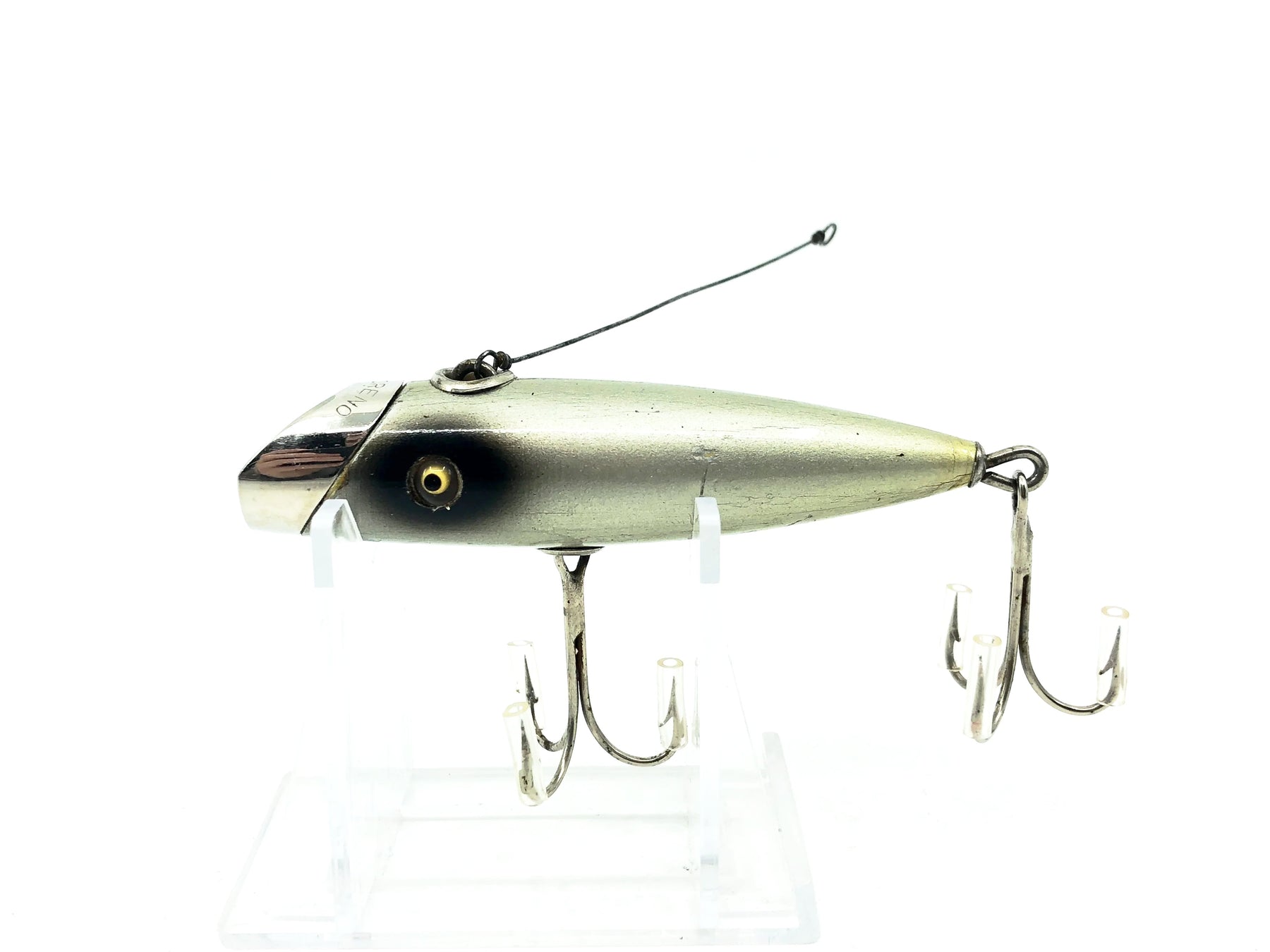 South Bend Fish-Oreno, S Silver Color, GE. Very tough color that was only made from 1927-30. About 3 3/8" long.  Lure was made by South Bend from 1926-1952.  Used vintage lure with some minor wear but overall good condition.  See photos. Would be great for fishing or add to that vintage display.