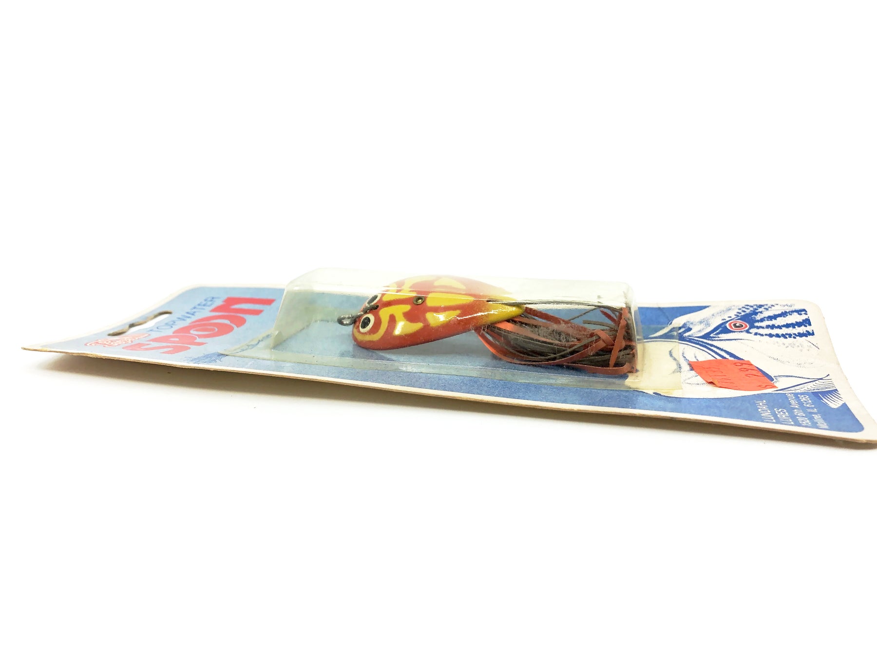 Lundahl Lure Pops Spoon, Gold Scarab/Red Color on Card. Uncommon bait here. Spoon is about 3 1/8" long overall including hook. Lure is new on card but the skirt is a bit dry and cracked. Card is in great condition. Fish or collect, see photos.