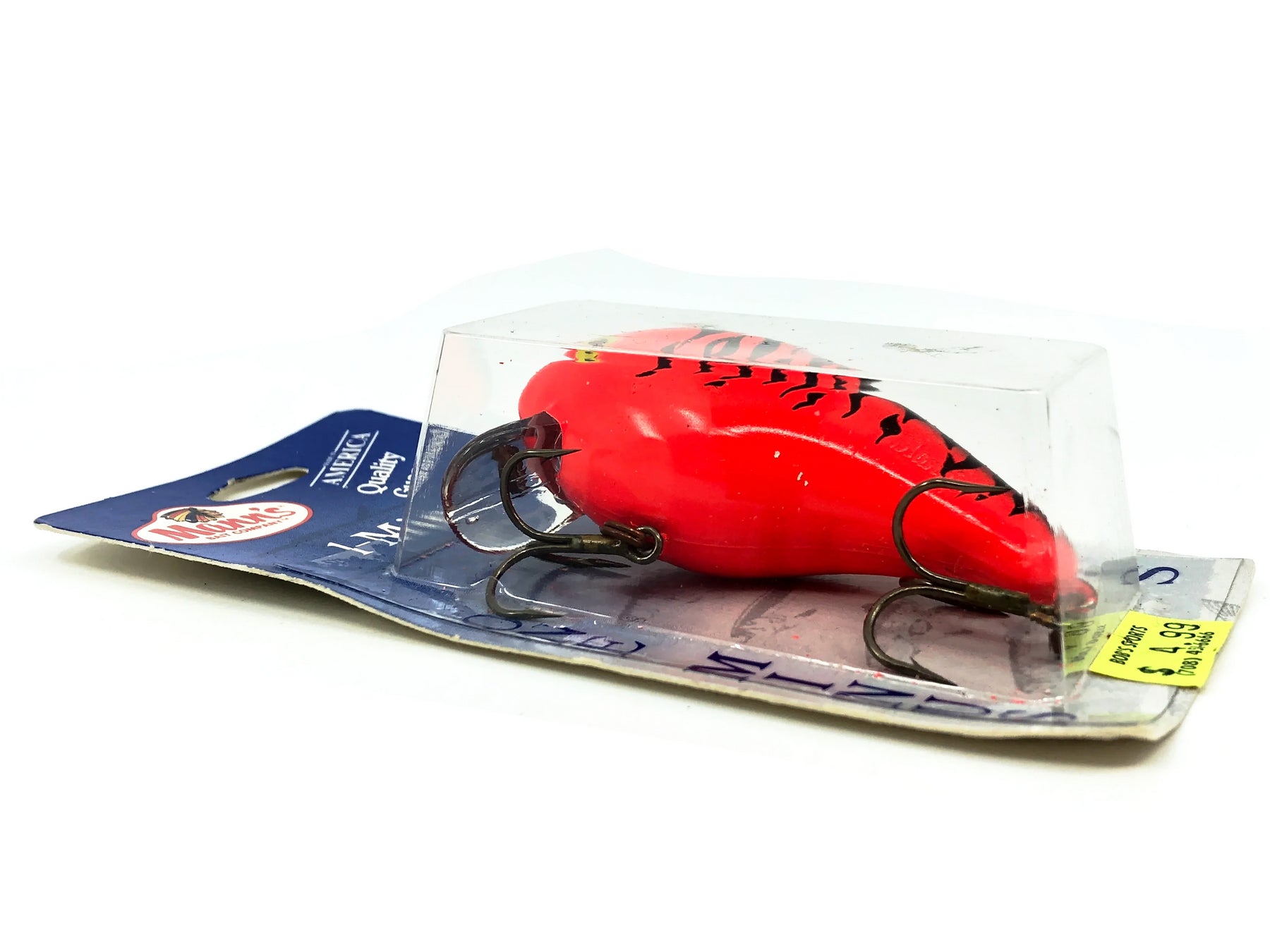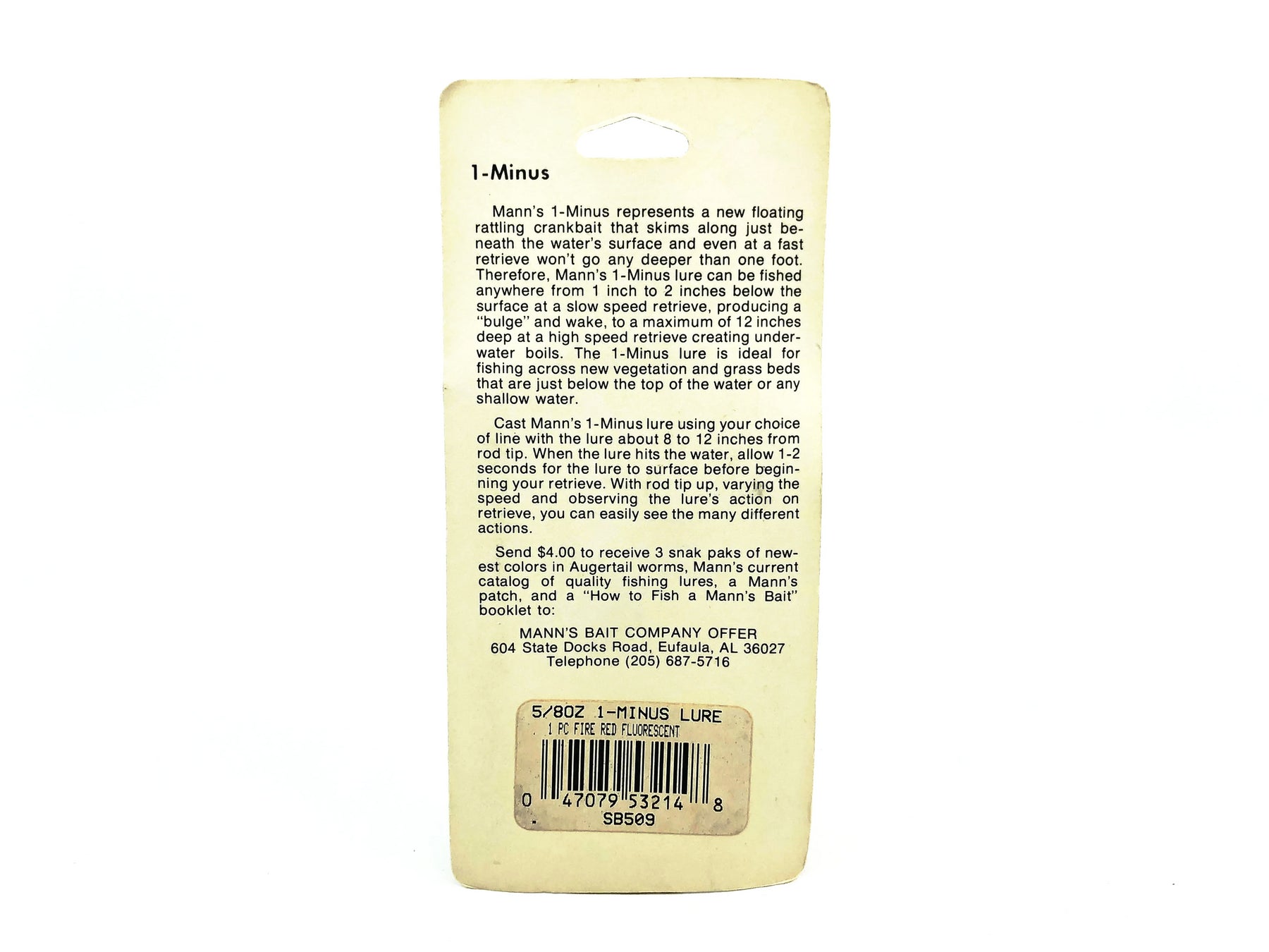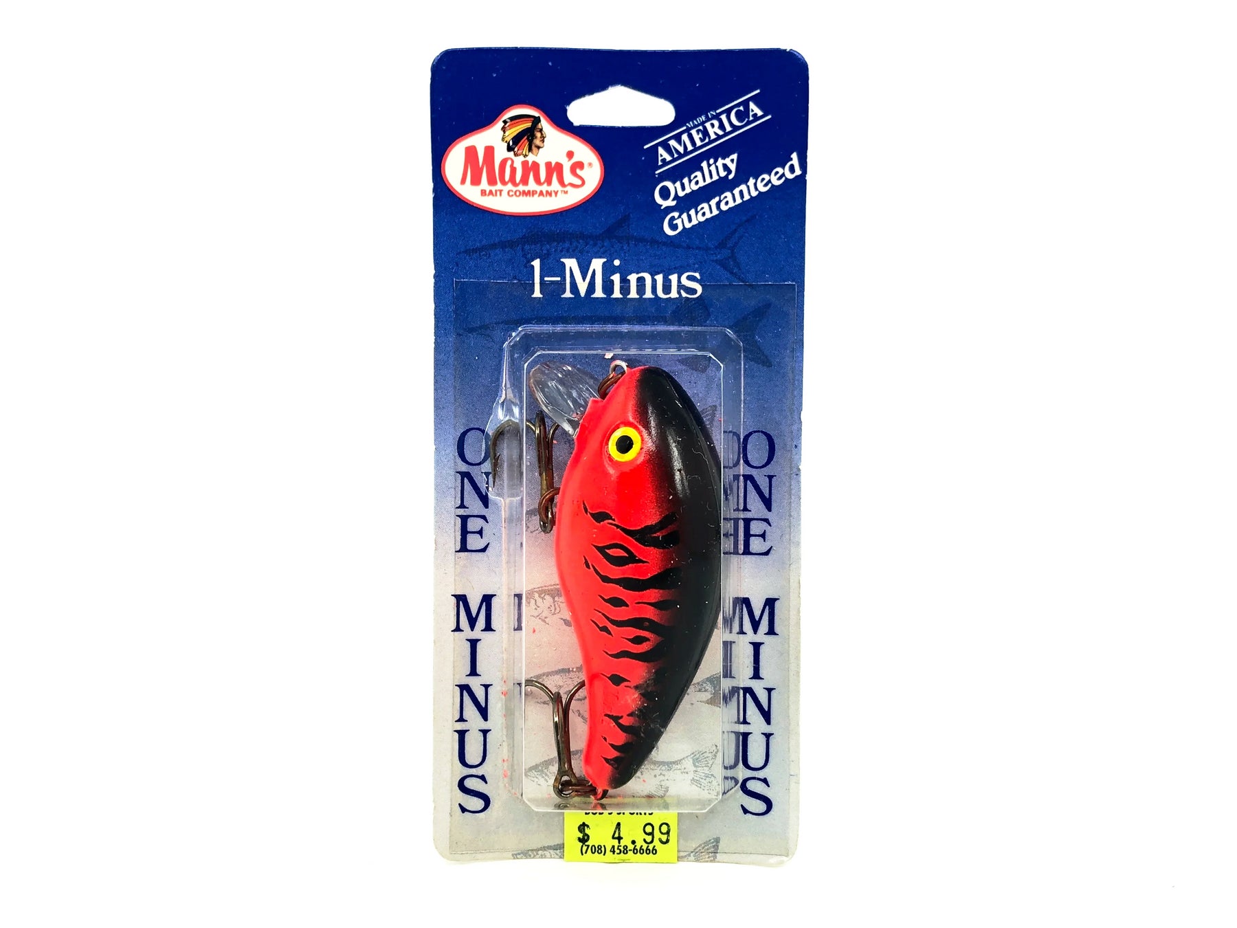 Mann's 1- Minus, Fire Red Fluorescent Color on Card. These lures are insanely desirable ever since Mann's closed their doors. Bait has about 3 1/4" long body and weighs 5/8oz. Bait is new on card. Card is in overall good condition. See photos.