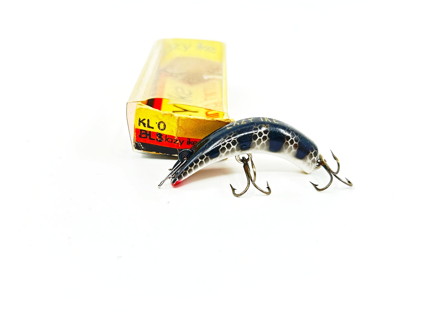 Lazy Ike KL0-BLS Black Scale with Box. Tough lure to find. Not made that many years. About 1 3/4" long. Lure in great shape, most likely never used. Box has some wear as shown but overall in ok shape and matches lure. See photos. Grab this one while you can. One of the tougher Lazy Ike lures to find.