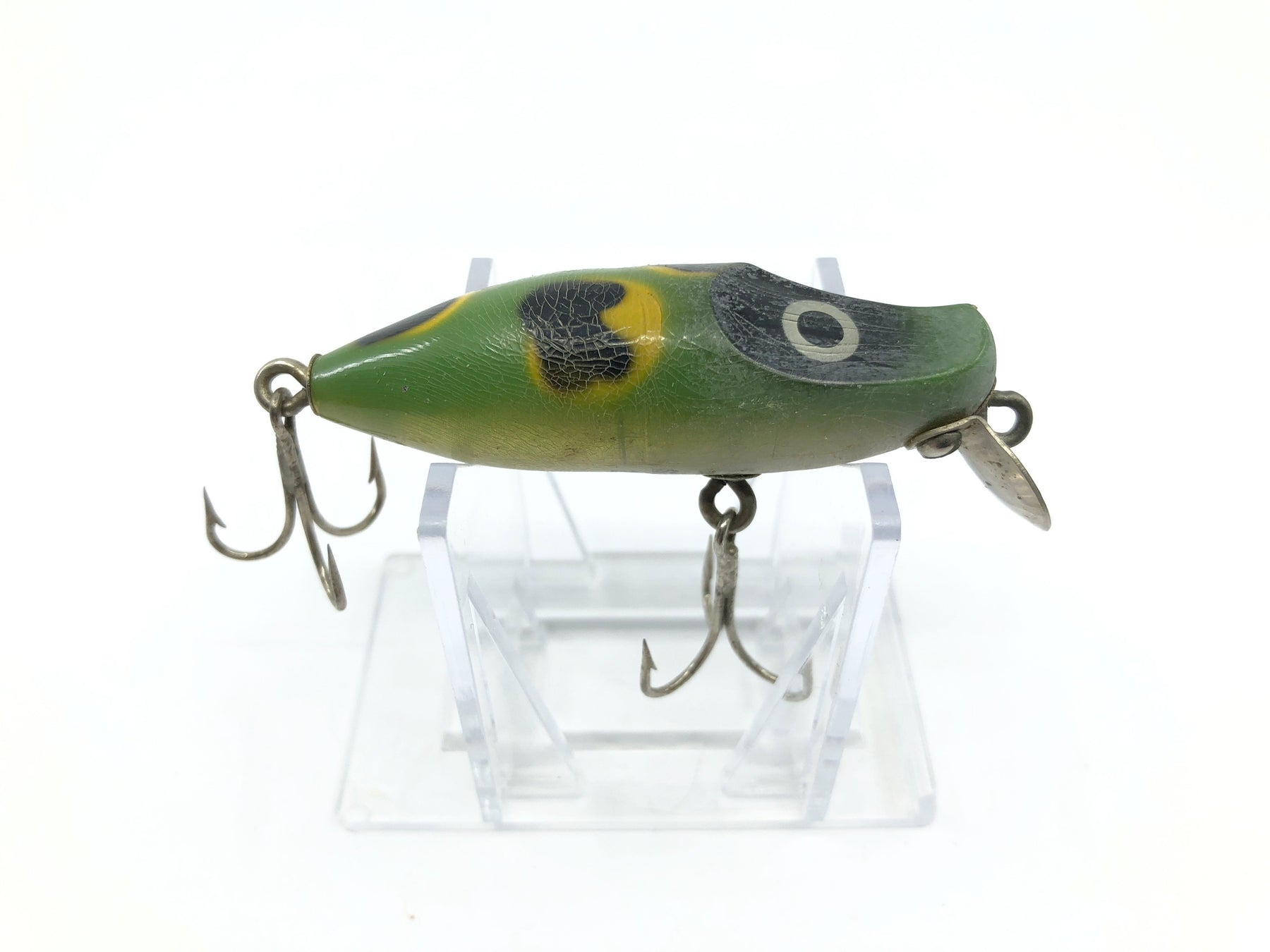 Millsite 500 Series River Runt in Frog Color. About 2.5" long. Used vintage lure but in good condition. See photos. Great vintage lure from the former Millsite Tackle Company from Howell, Michigan. Lure dates from probably the 1950's or 60's. Really very nice condition for age. Add to your collection or tackle box.