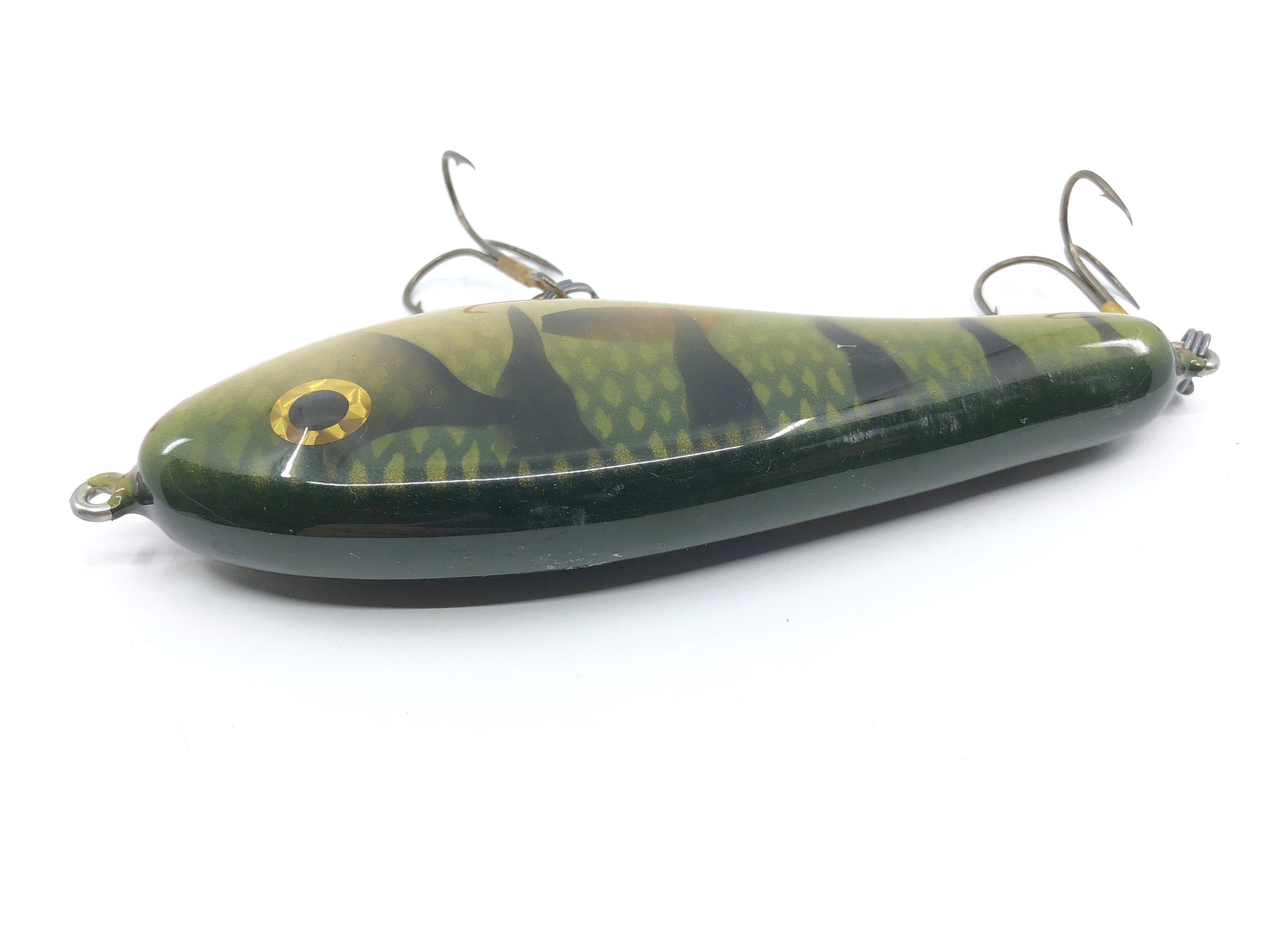 Lundberg Stalker Musky Lure Perch Color.  About 6" long.  Used but appears un-fished.  Great condition, see photos.  Tougher musky lure to find anymore.  Great bait here!