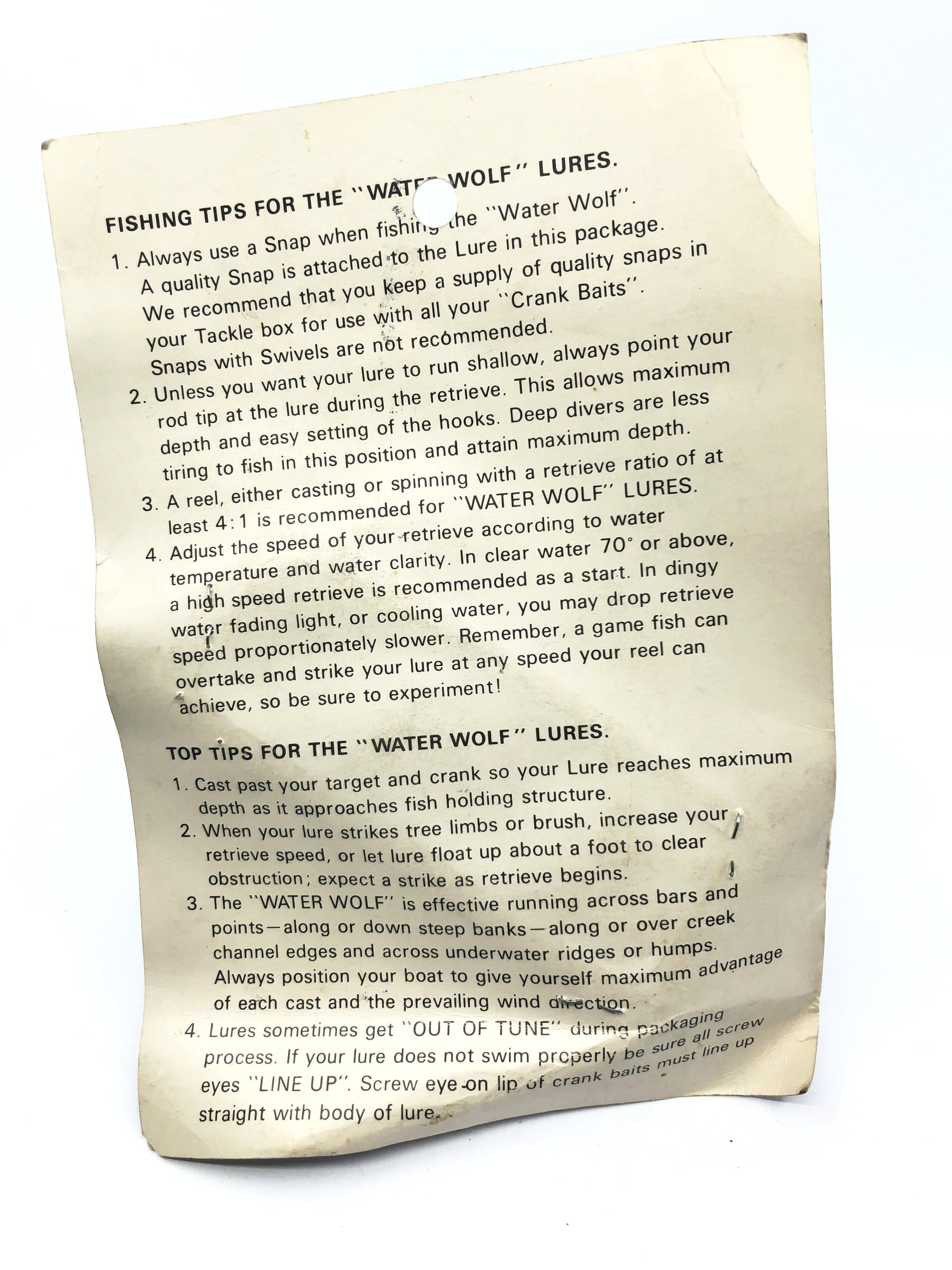 Lazy Ike Natural Ike Water Wolf Lobo Lure Bluegill Color NID-25 on Card. There is some speculation on what exactly these Water Wolf lures are. Some say the company received the rights to "white label" the Natural Ike from one of it's owners during a transitional period. Others think this is an imitation bait. Either way it's essentially a Natural Ike Deep Diver.