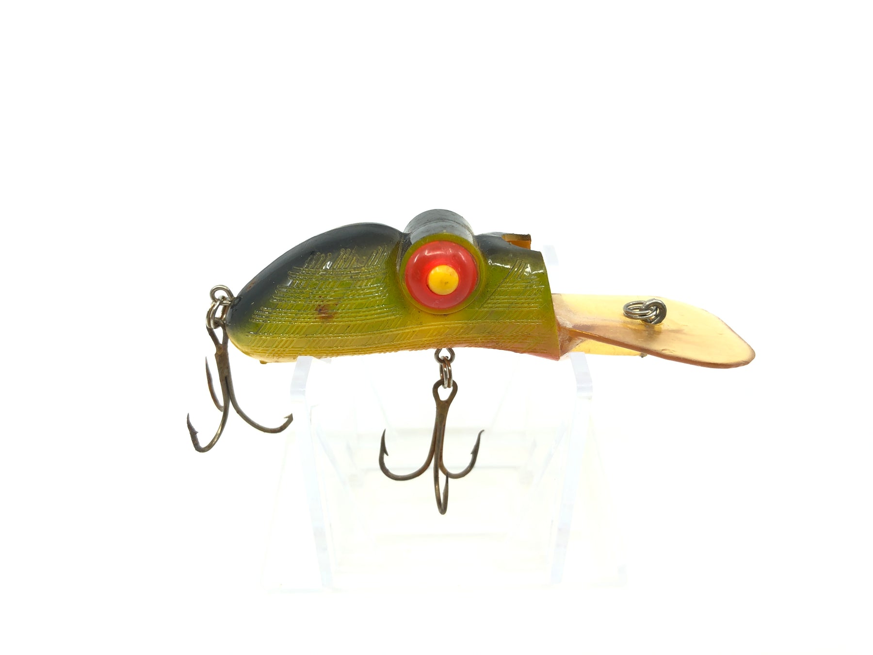 Rabble Rouser Roo-Tur Deep Diving Lip Green and Yellow Color. Great vintage lure here. About 3 1/4" long including lip. Used with some wear but overall good condition, see photos. Fish or collect this classic.