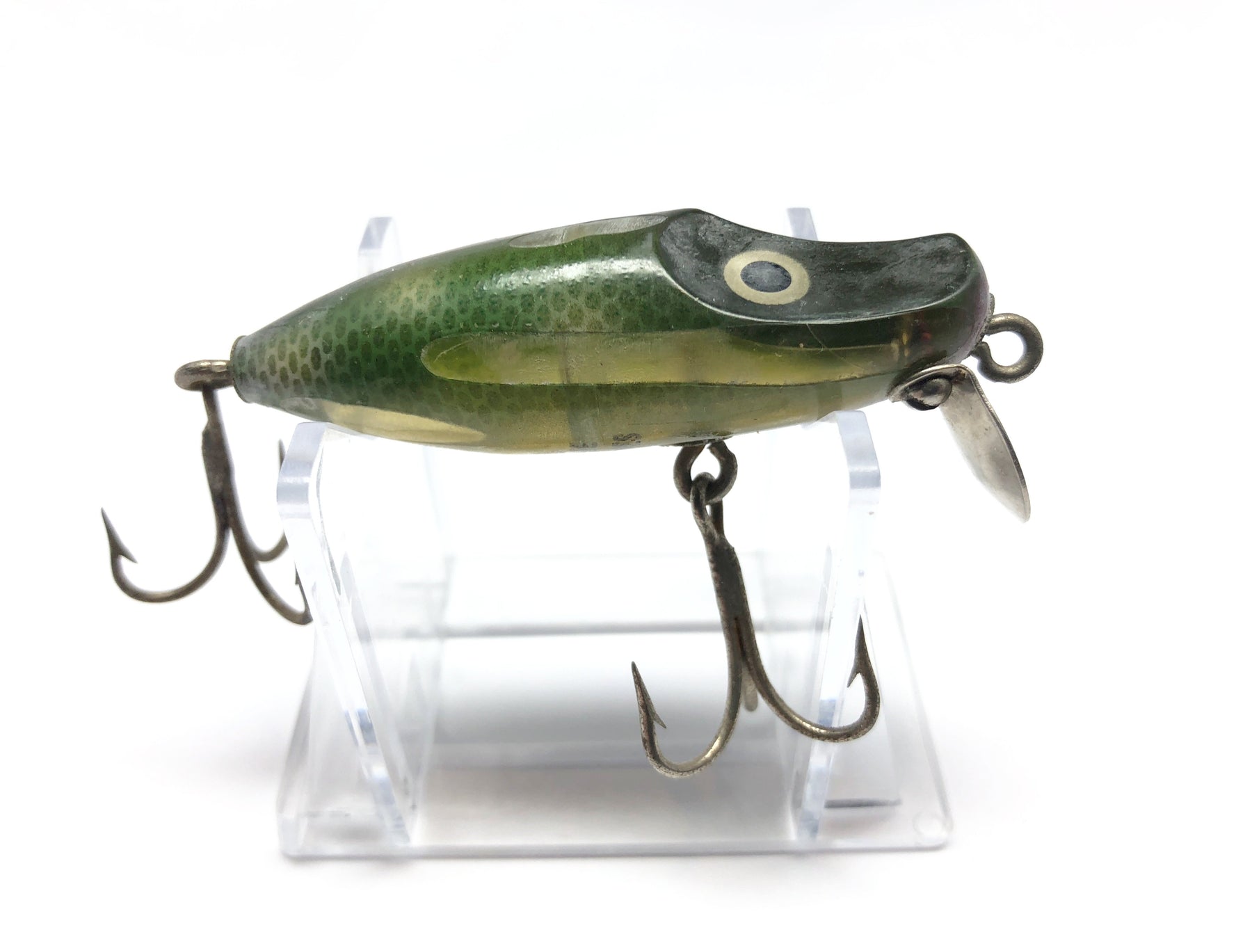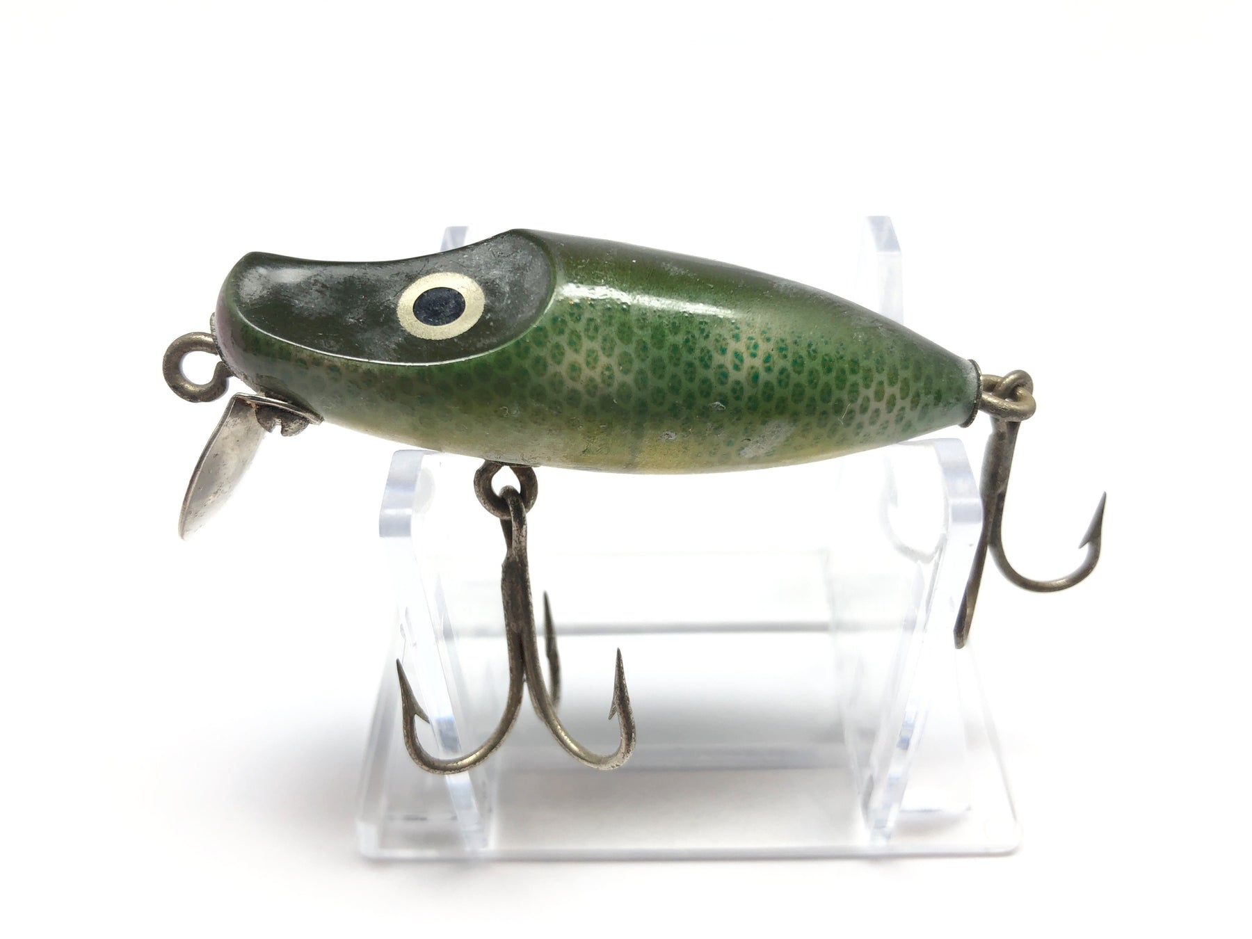 Millsite 500 Series Runt Frog Color Warrior.  Great vintage lure from the former Millsite Tackle Company from Howell, Michigan.  Lure dates from probably the 1950's or 60's.  This lure has some wear as you can see pattern is off in spots.  Take this guy fishing and catch some fish!