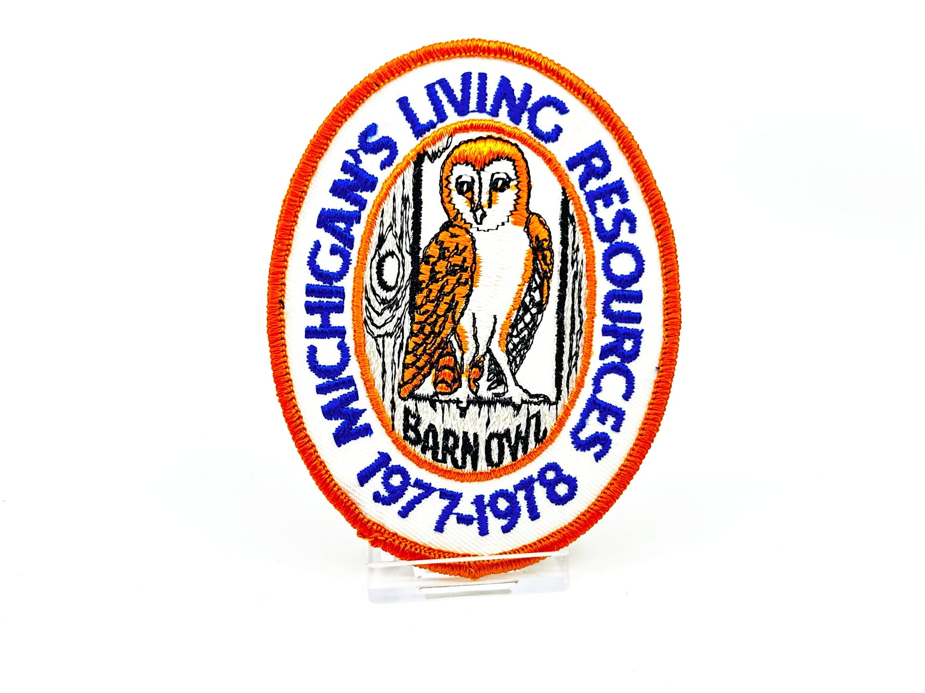 Michigan's Living Resources 1977-1978 Barn Owl Vintage Patch. About 4" x 3". Unused and in nice overall condition. See photo. These look awesome with your display or put on your gear. Add to your collection today!