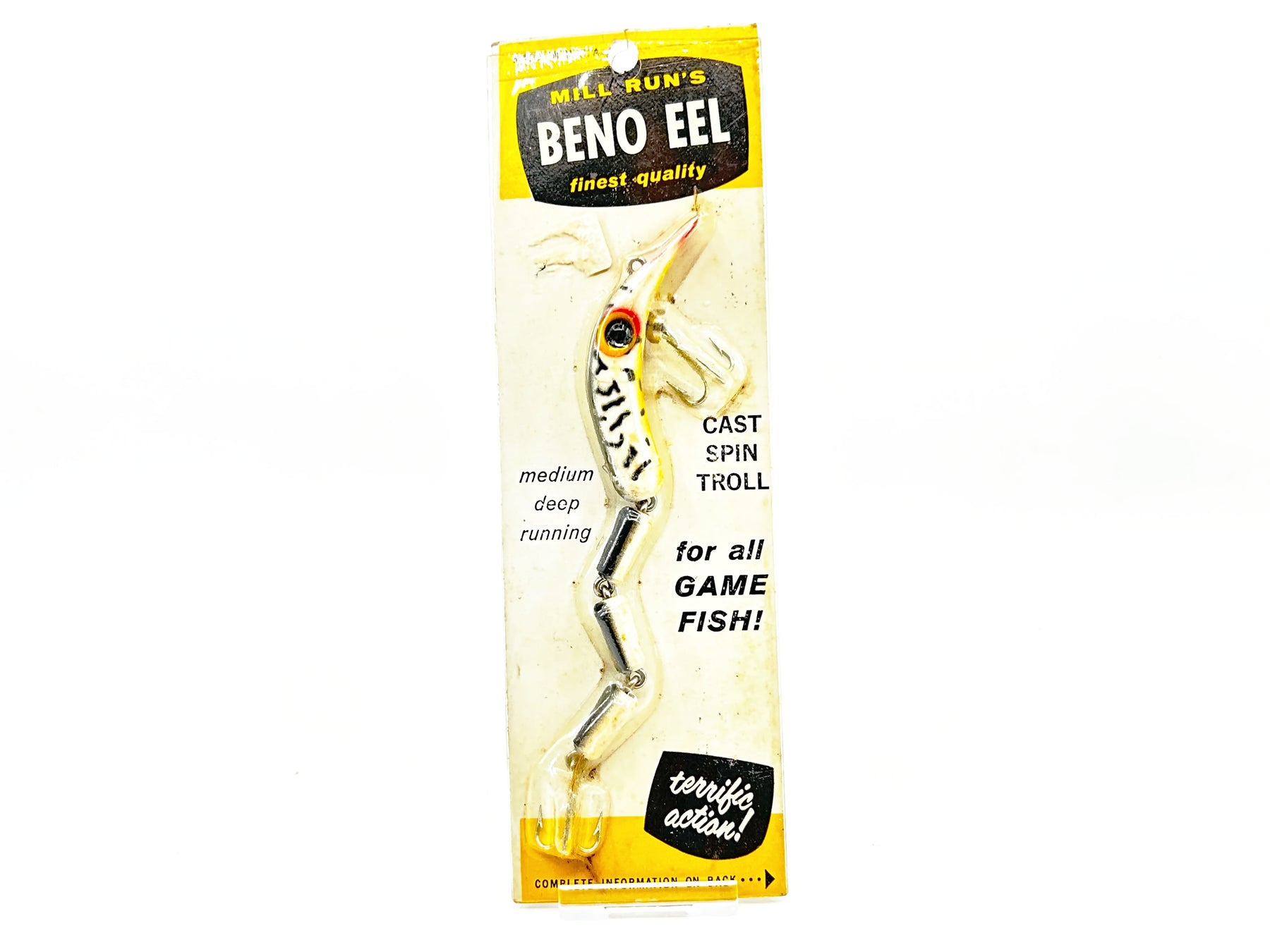 Mill Run's Beno Lure Eel Coachdog Color New on Card. Old Stock here dating back a couple of decades. Lure body is about 4 1/2" long. Card has some minor wear but overall good condition. Lure new inside card. Great fishing lure and becoming quite collectible. Grab this one while you can. See photos. Tougher model to find.