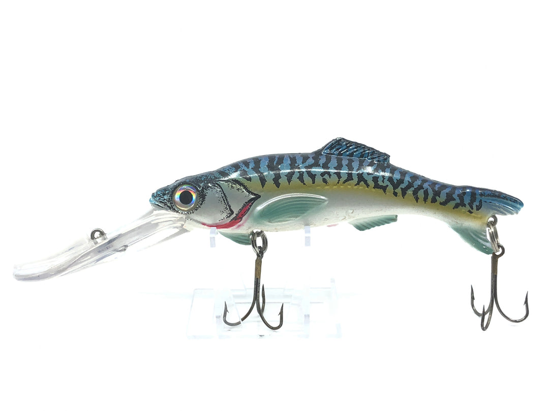 Worden's Sea Tiger 4050 MAC Mackerel Salesmen Sample. Worden's flagship Sea-Tow wobbler lure. This almost 9" saltwater or large freshwater game fish bait has a maximum diving depth of 30' regardless of the speed. This lure provide plenty of action, appeal and sound thanks to its hyper realistic design and the large beads inside of the lure. The sample model unfortunately comes with a color code underneath the lip and has no hooks.