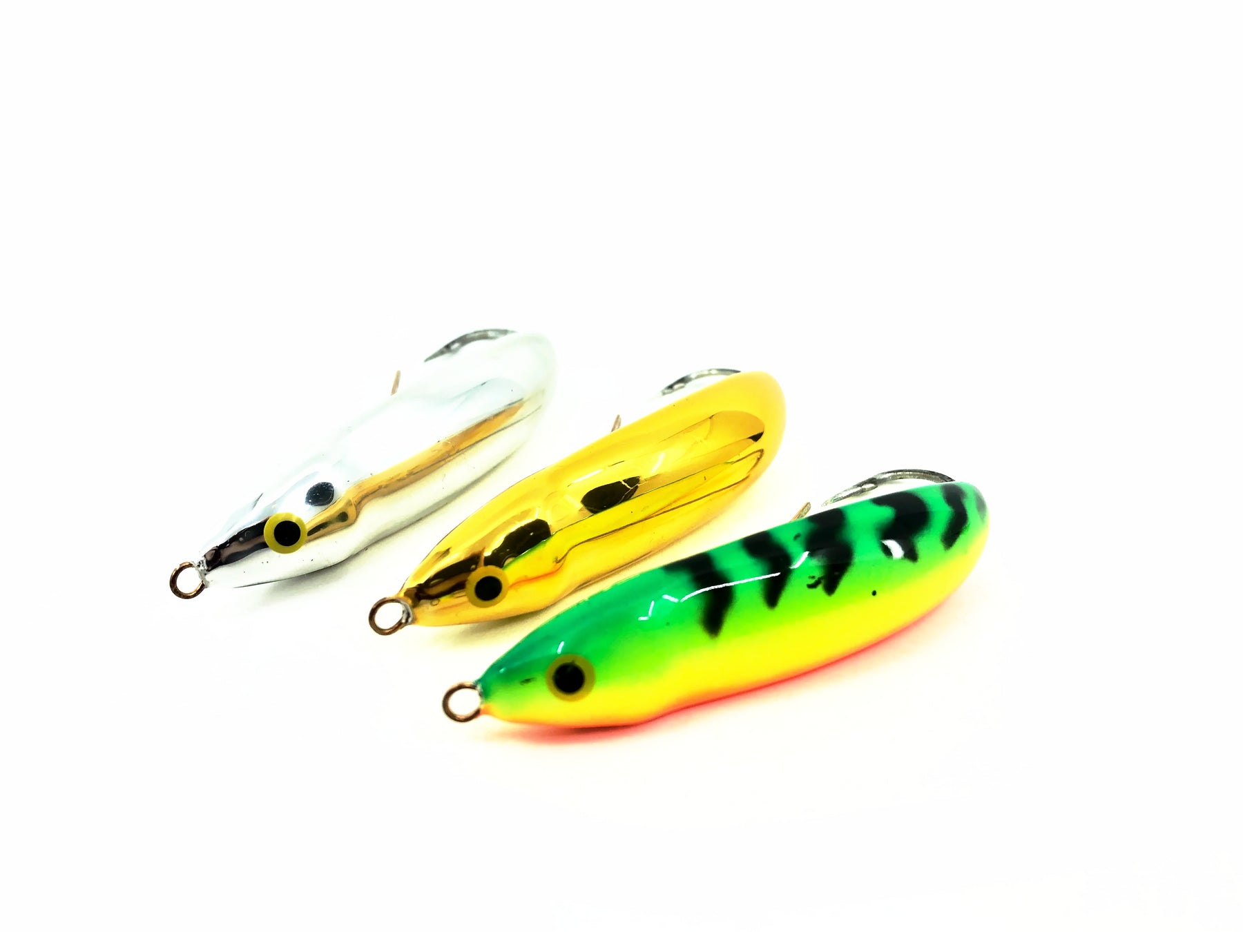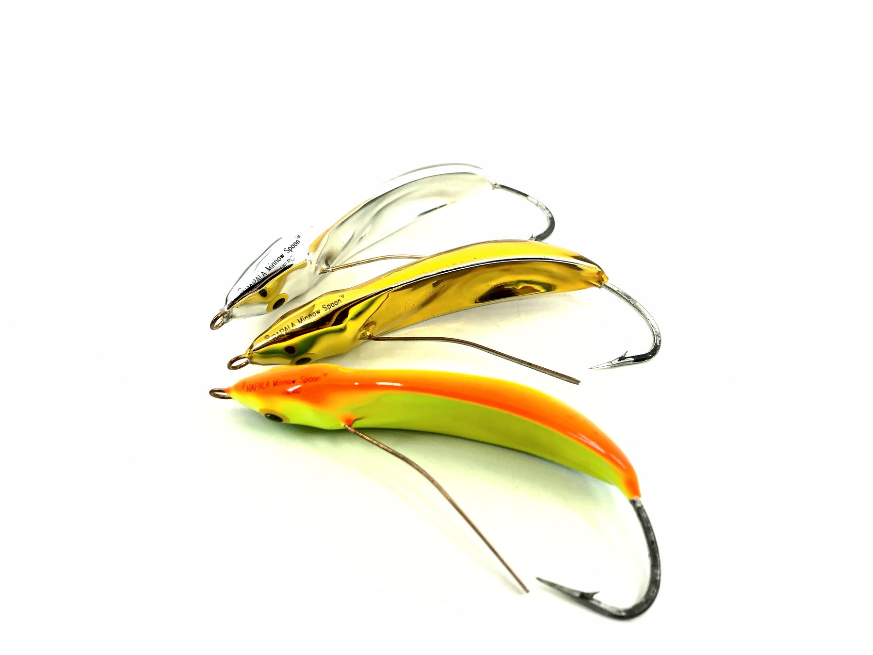 Rapala Minnow Spoon Weedless RMS-7 Trio. Great pack here with three discontinued lures. All are about 2 3/4" long overall. Lure's are all in great condition. Fish or collect, see photos.
