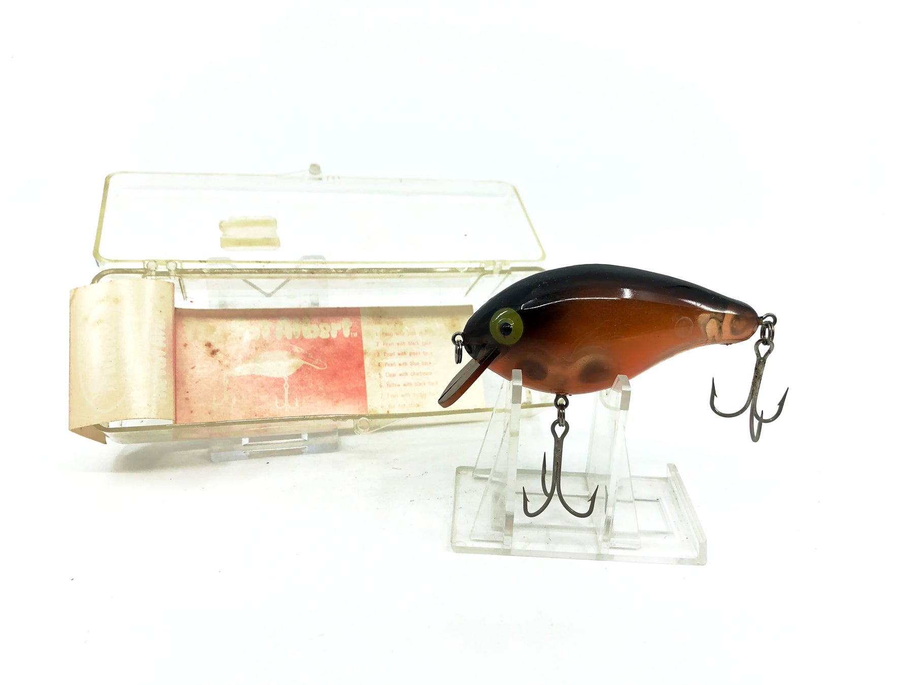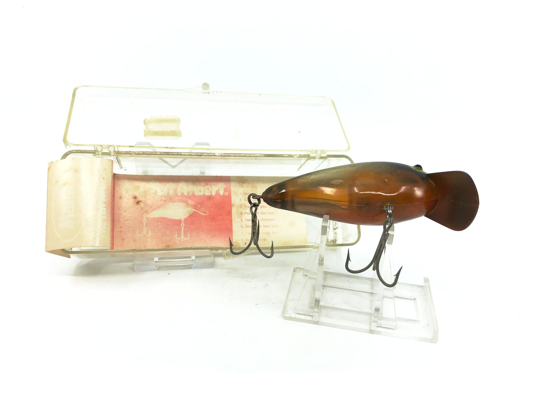Mann's The Fat Albert, Orange/Black Back Color. About 3" long not including the lip. Lure is in good condition with minor wear. Box is in good condition however paperwork has some fading. Classic Mann's lure that wasn't made for many years. See photos.