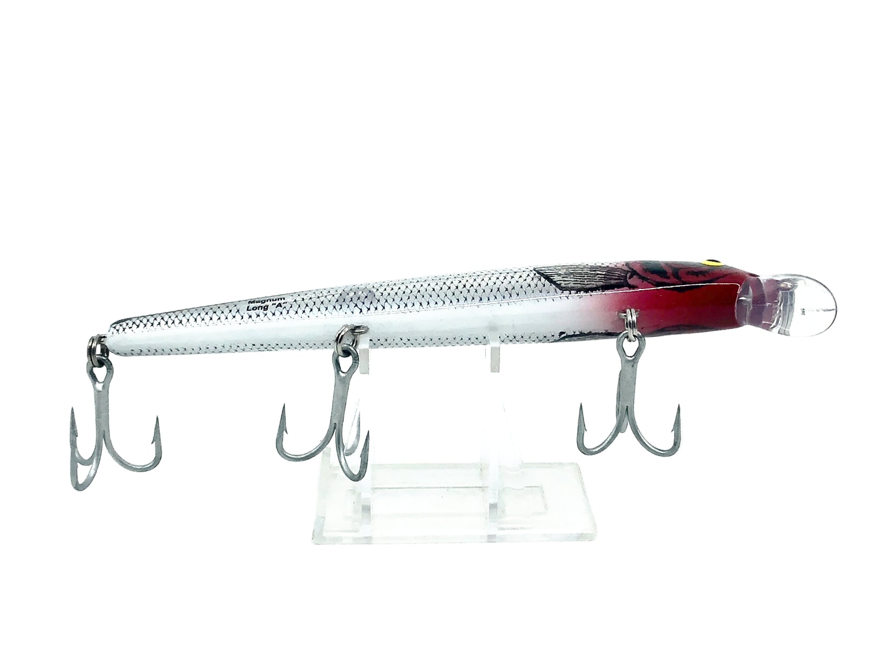 Bomber Magnum Long a 16A, XSI04 Silver Flash/White Back/Red Head Color. This bait is about 6" long excluding the lip. Lure is used with some minor wear but in overall good condition. Fish or collect!
