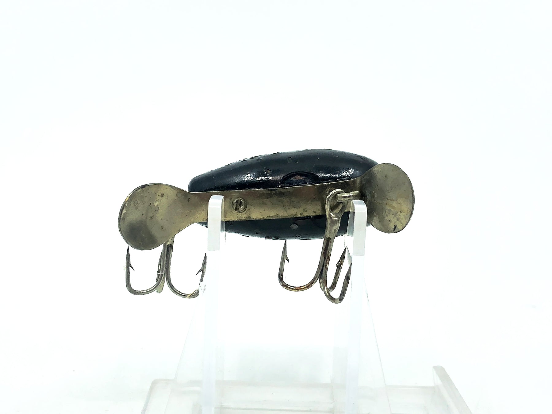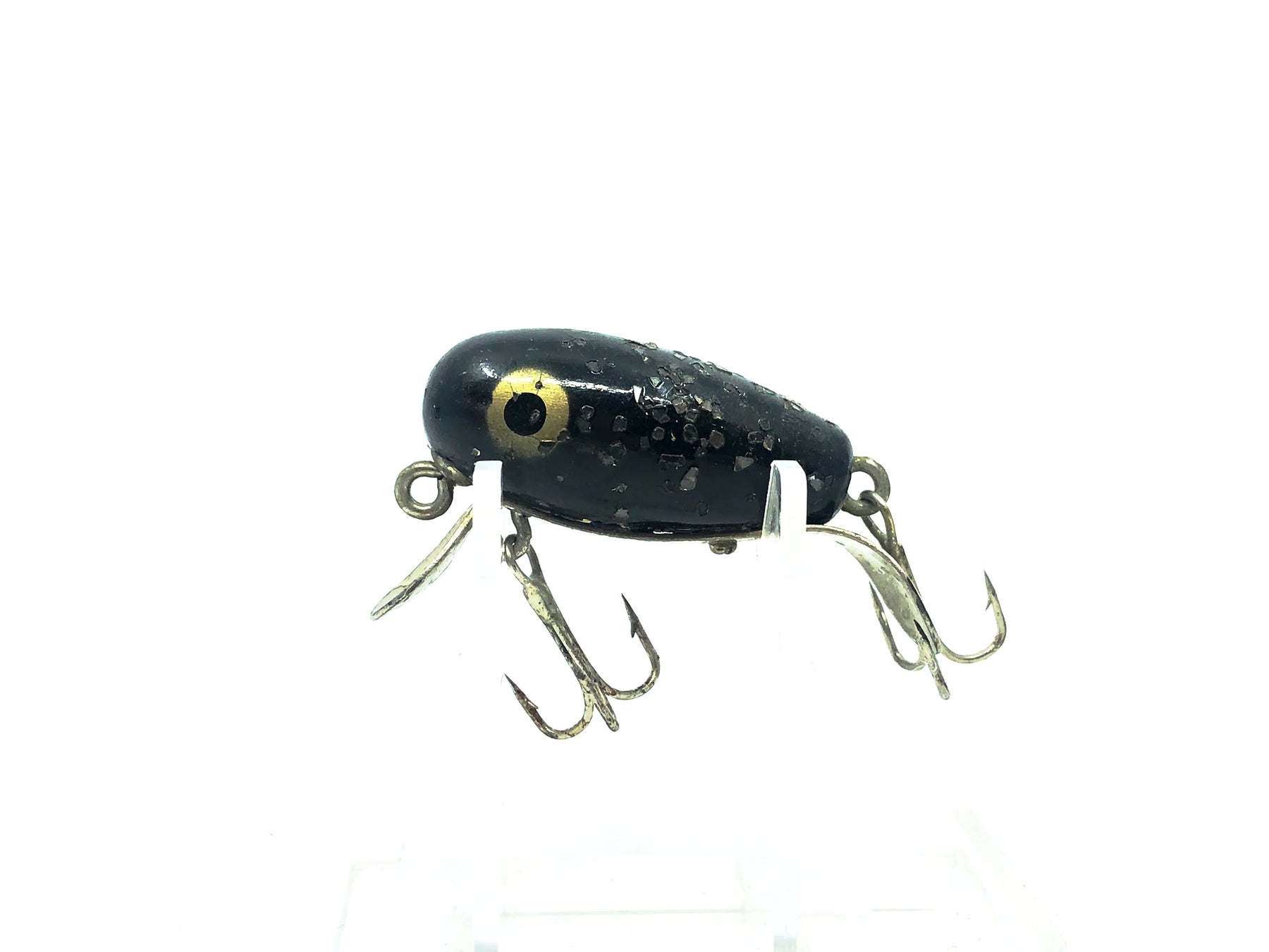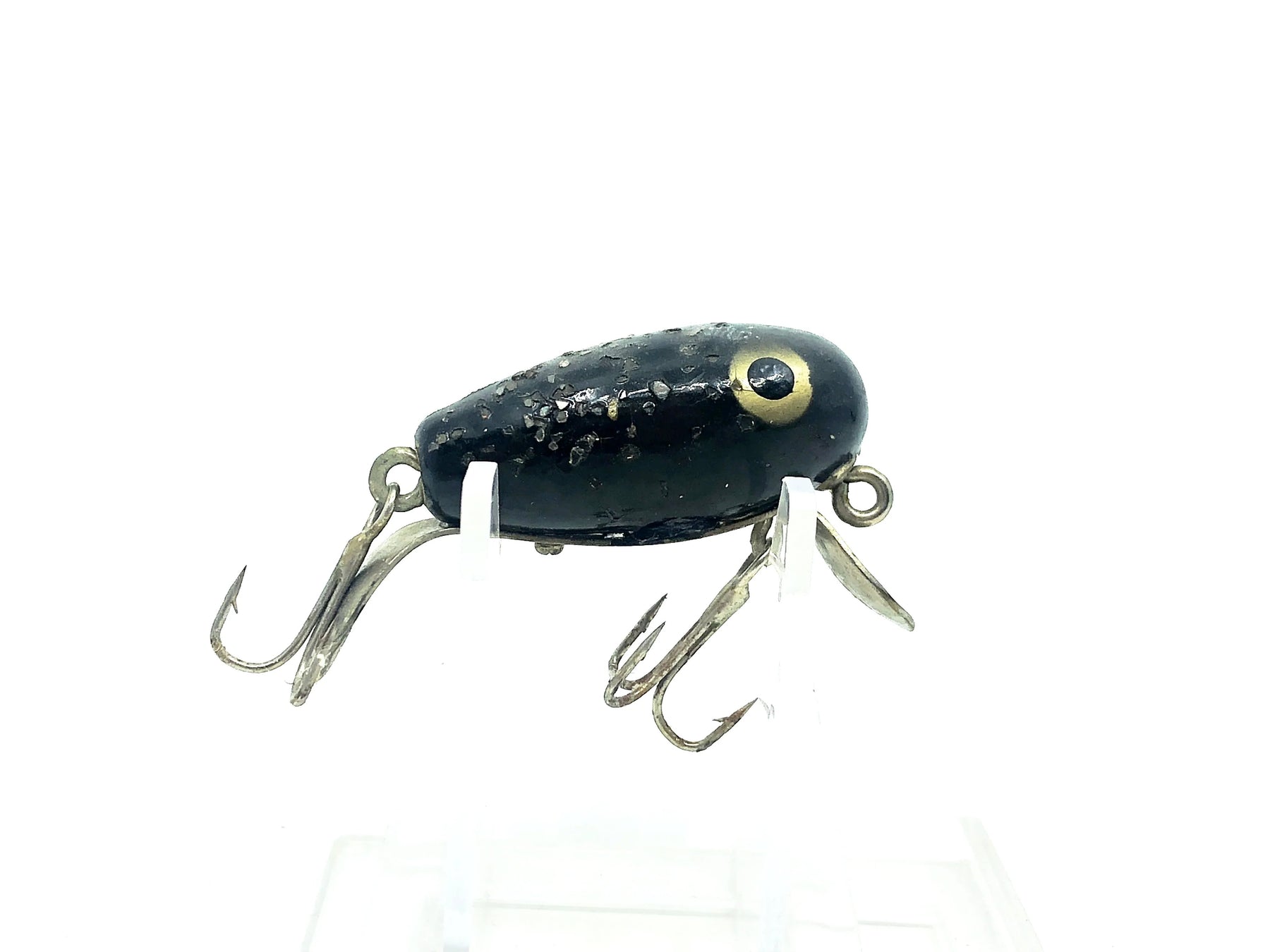 Paw Paw Jig-A-Lure #2700, #29 Black Silver Flitter Color. Harder to find niche Paw Paw lure. This lure is about 2 1/8" long, body is about 1 1/2" long. Lure is used with some minor wear but otherwise in good condition. Fish or collect, see photos.