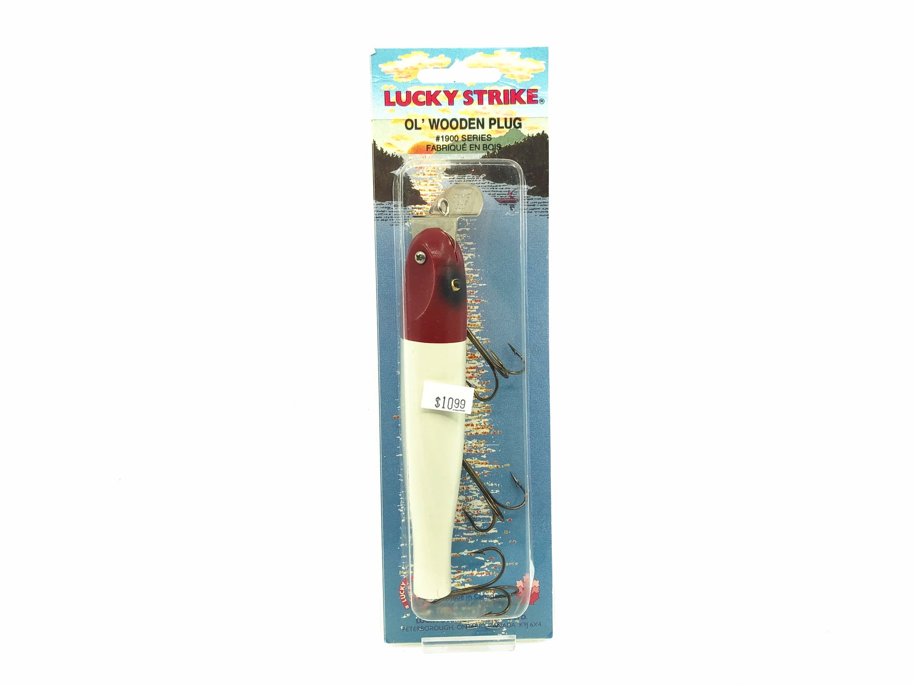 Lucky Strike 1900 Series Pikie, Red & White Color Old Stock New on Card. Ol' Wooden Plug 1902. About 6 1/4" long including the lip. Card in nice shape. Lure new inside card. Tougher to find these lures. Wooden lure and beautiful. See photo and grab this one while it lasts!