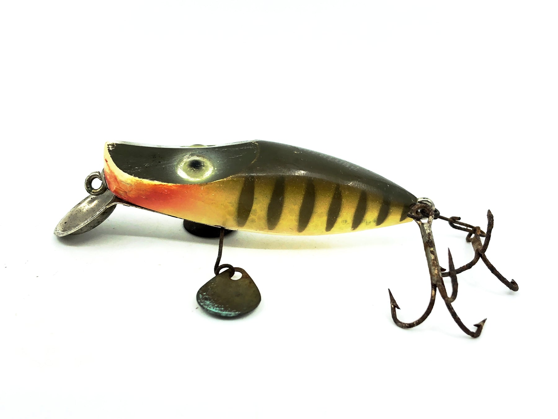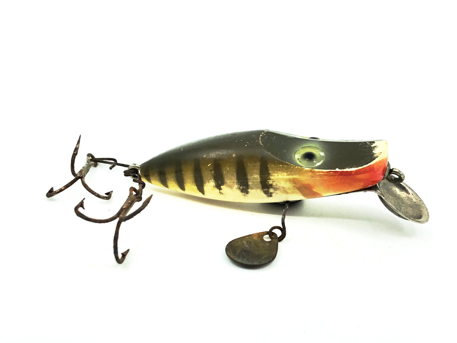 Makinen Wonderlure, Pike Color. About 3" long overall. Lure has some wear and missing paint but still in ok condition. Fish or collect, see photos.