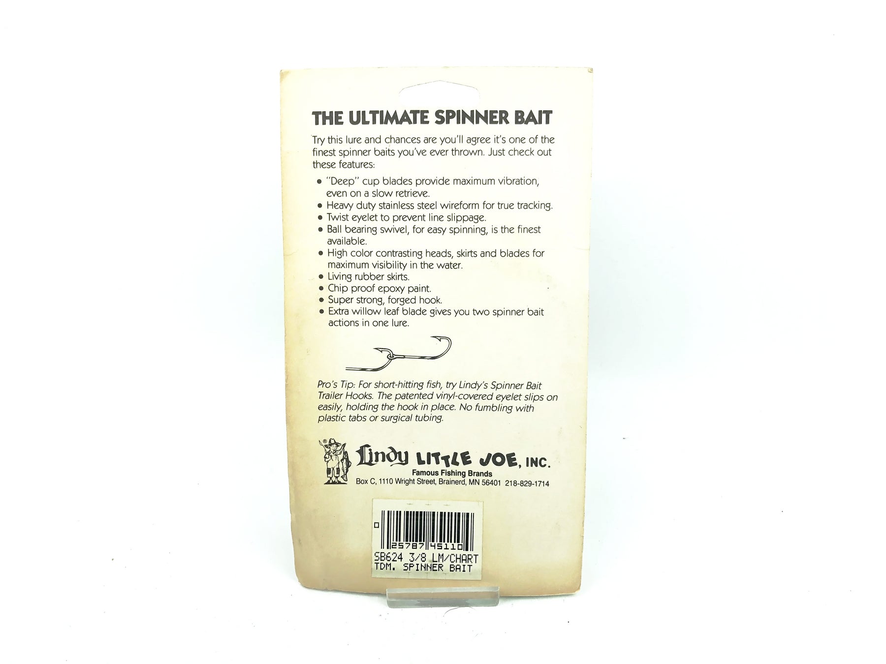 Lindy Little Joe Tandem Spinner Bait, Lime/Chartreuse Color on Card. Weighs 3/8oz. Card is in good condition, lure new on card. See photos. Tougher lure to find. Fish or collect.