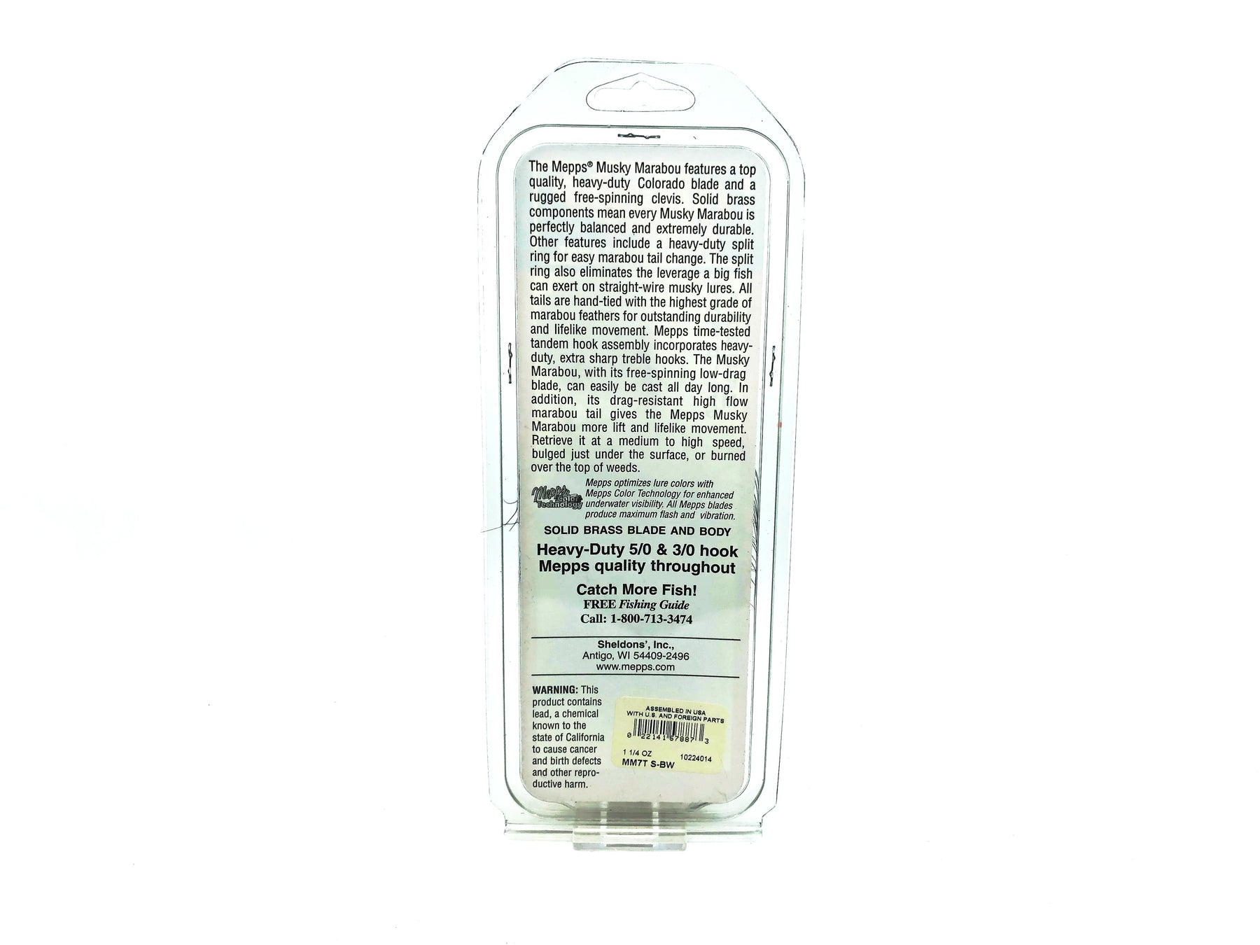 All tails are hand-tied with the highest grade of marabou feathers for outstanding durability and lifelike movement. Mepps time-tested tandem hook assembly incorporates heavy-duty extra sharp treble hooks. The Musky Marabou, with its easy-spin low-drag blade, can easily be cast all day long. In addition, its drag-resistant high-flow marabou tail gives the Mepps Musky Marabou more lift and lifelike movement. Retrieve it at a medium to high speed, bulged just under the surface or burned over the top of weeds.