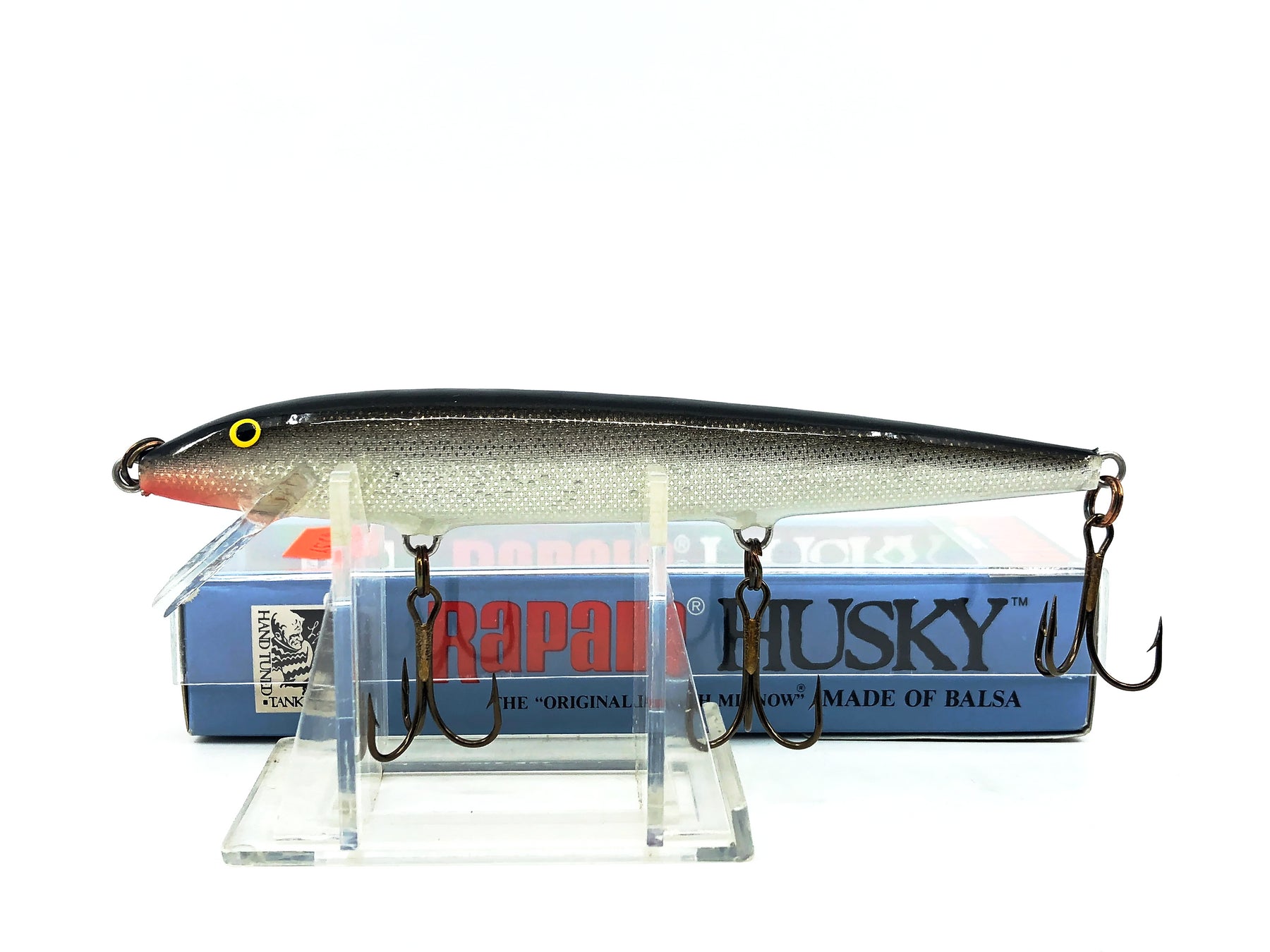 Rapala Husky Floating Minnow H13, S Sliver Color w/Box. Great discontinued line here. About 5 1/4" long. Both lure and hooks are in new like condition however this bait is out of its packaging. Box is in good condition. See photos. Perfect for any fisherman. See photos.