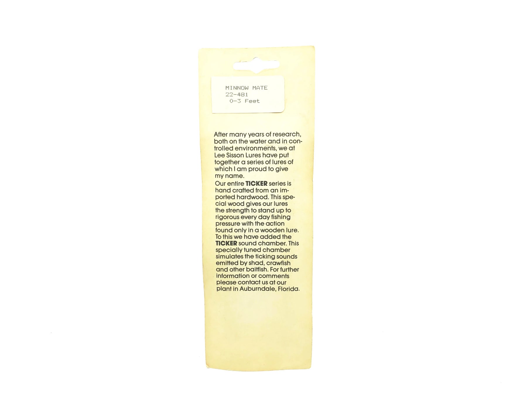 Lee Sisson Ticker Minnow Mate, Crawfish Color on Card. Lure is about 4 3/4" long. Card has some minor wear, lure is new on card. Great classic crank bait here, fish or collect.