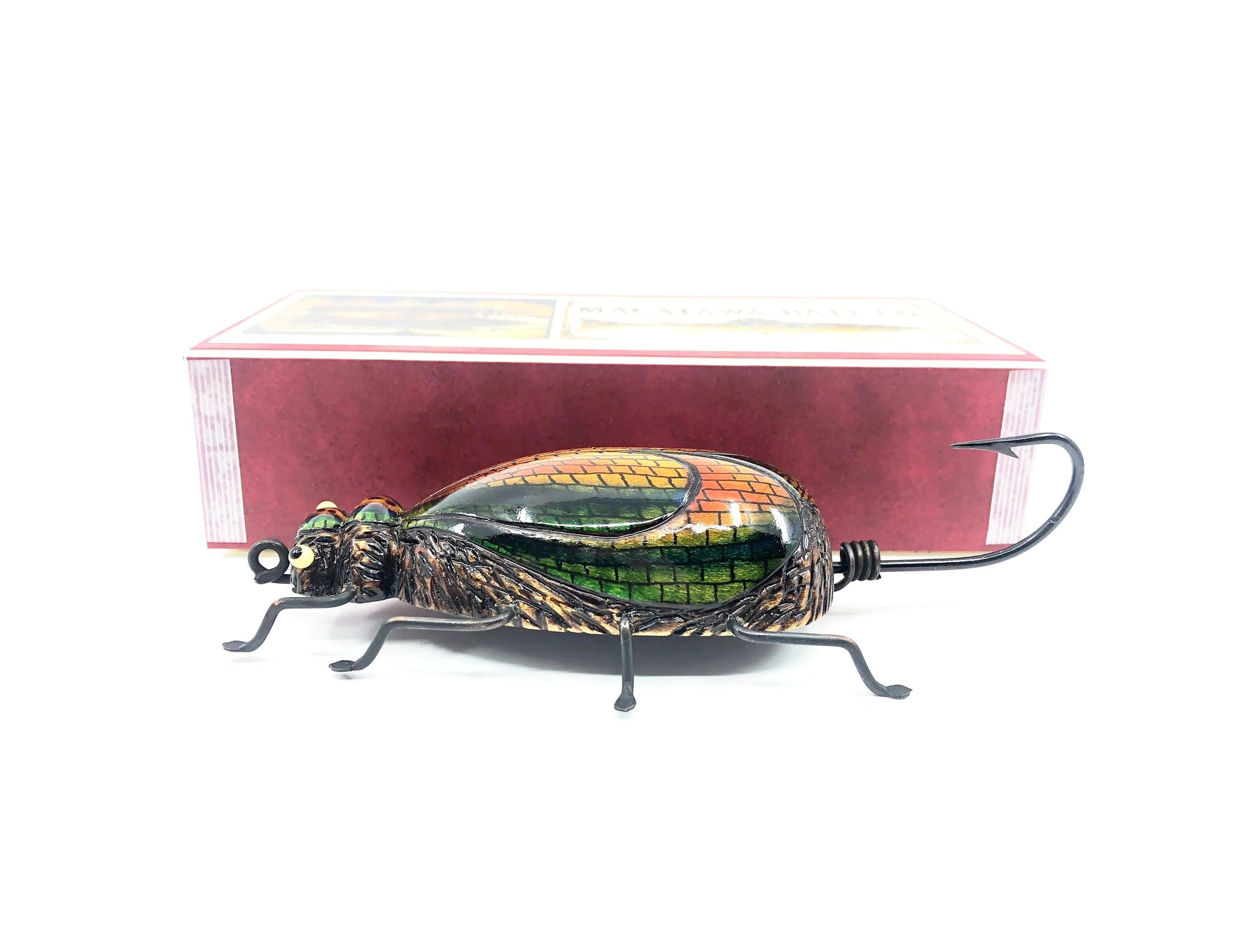 Macatawa Bait Co. Musky Beetle 6" Lure w/Box. Great Macatawa bait here. Lure is about 6 1/4" long overall (body about 4"). Wooden lure, bead eyes. Lure and box are in amazing shape with just a little storage wear on the box. See photos. Unique beetle lure.