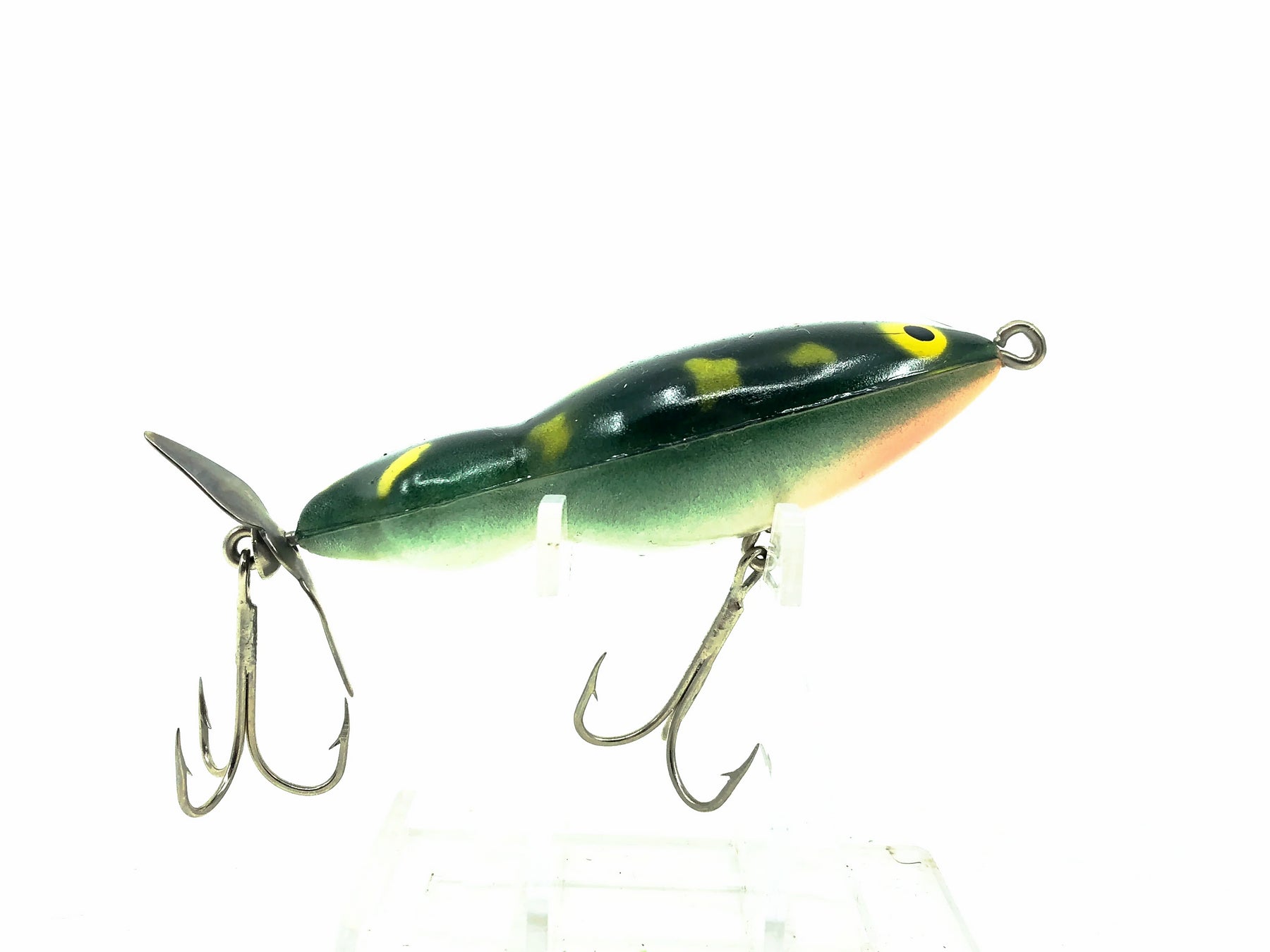 Mann's Frog Mann, Dark Frog Color. Very uncommon Mann's here. About 3" long. Vintage lure is used but appears to have never been fished and is in overall great condition. This lure would be perfect in your tackle box or collection. See photos.