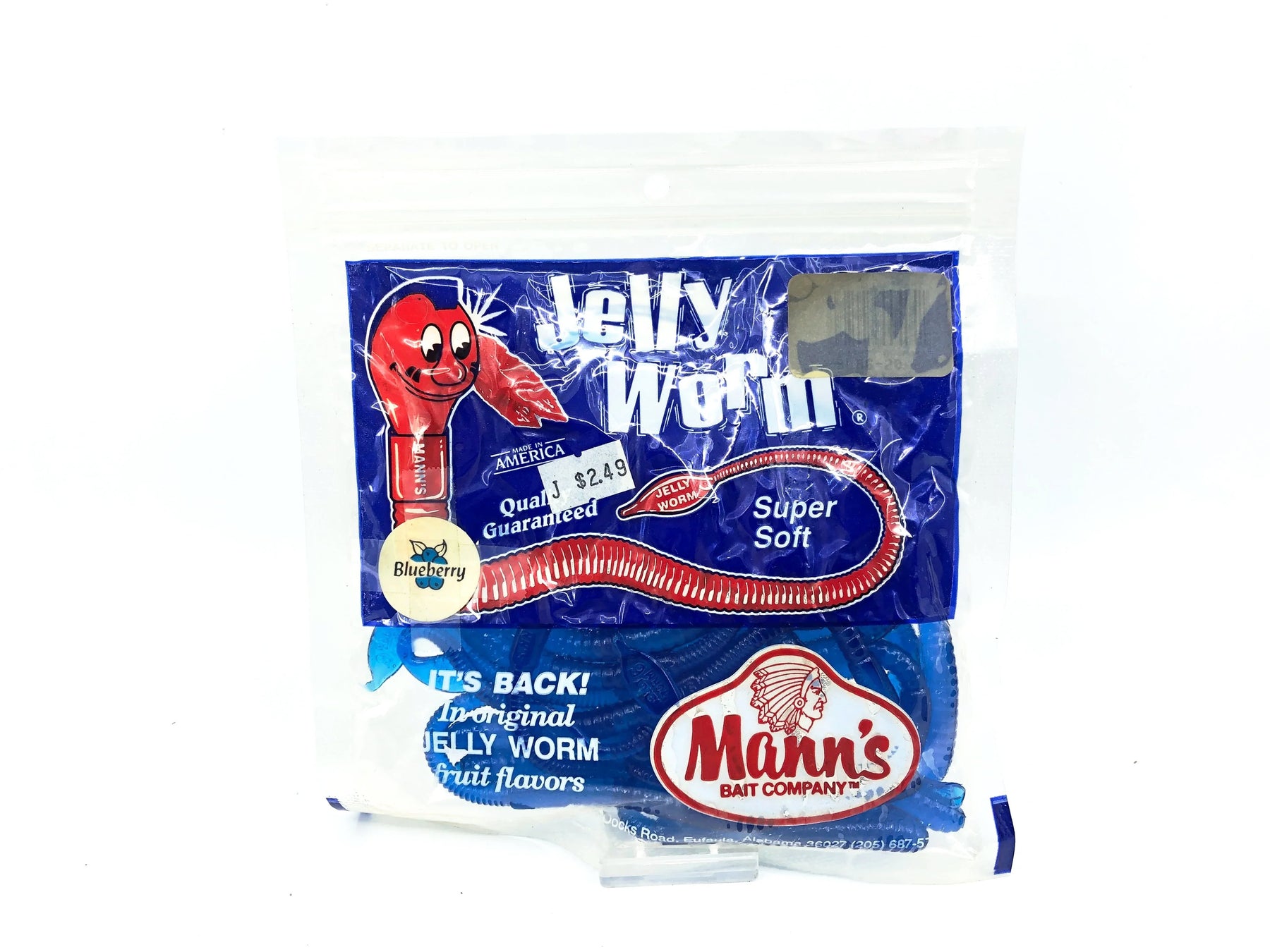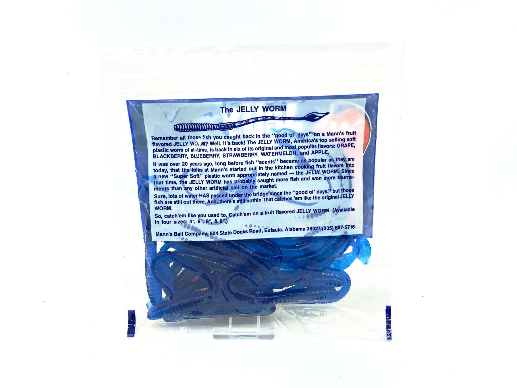 Mann's Jelly Worm 20 Pack, Original Blueberry Color. Great old stock Mann's here in cool packaging. All baits are new and in packaging. The packaging is in good condition with some minor wear. Baits are 6" long. See photos.