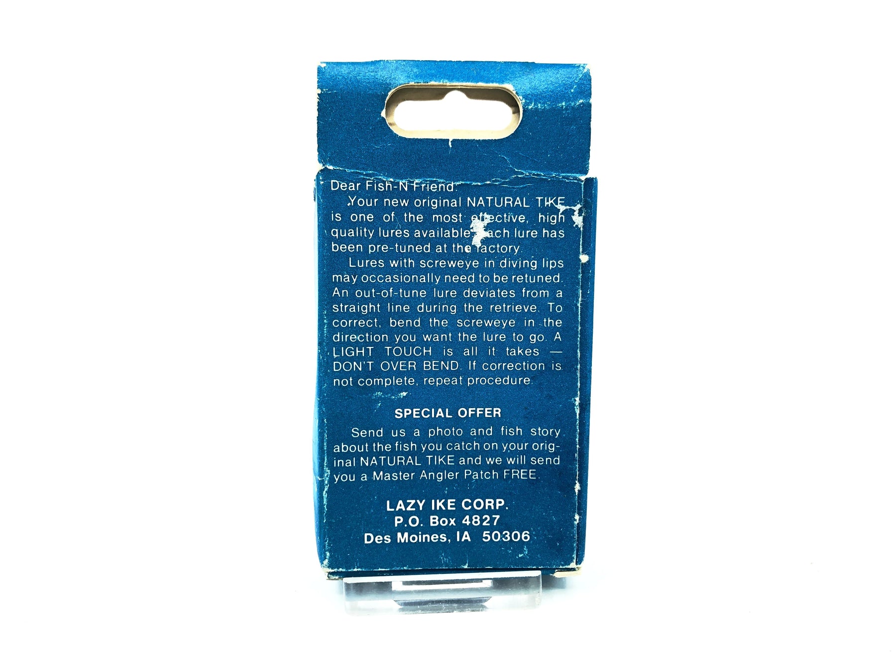 Lazy Ike Natural Tike NIT BG, Bluegill Color with Box. Harder to find box here. Lure  body is about 1 7/8" long. Box has some wear and marks but in overall good condition. Lure is new in box. Variant of one of the most famous lures of all time. Collect or fish!