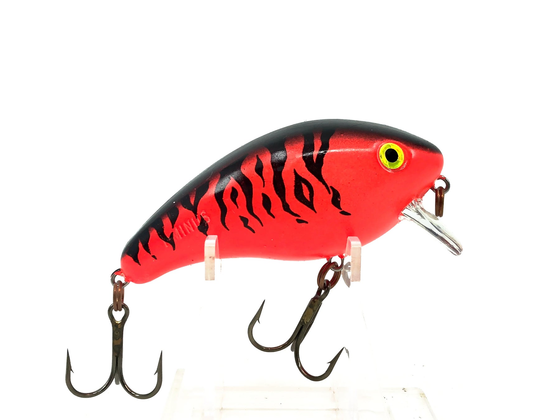 Mann's 1- Minus, Fire Red Fluorescent Color. These lures are insanely desirable ever since Mann's closed their doors. Bait has about 3 1/4" long body and weighs 5/8oz. Bait is used with some minor wear and marks, but in overall great condition. See photos.