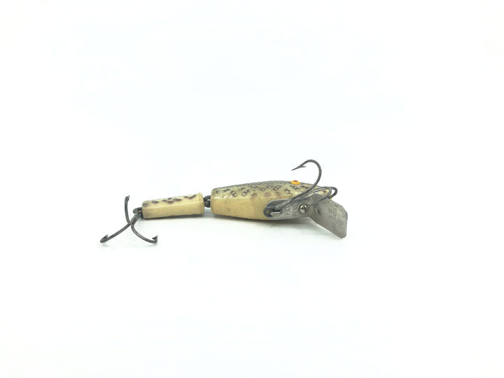 L & S Sinker Brown Speckled Color Bass-Master Model 25. About 3" long. Used with some minor wear and some waxing. Should clean up better. Overall good condition, see photos. Fish or collect a classic lure. Opaque eyes date this to pre-1950.