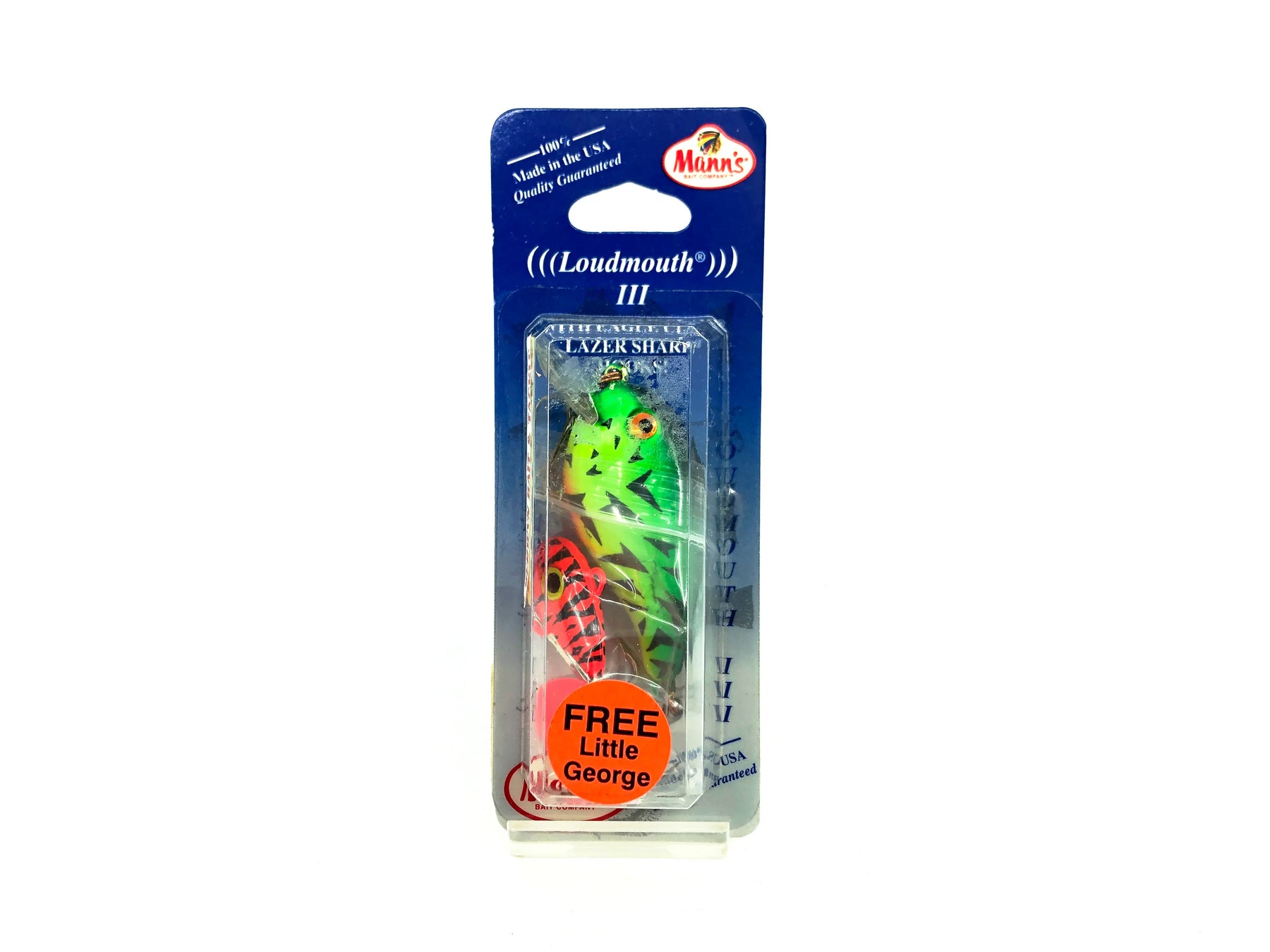 Mann's Loudmouth III, Fire Shad Color on Card. Body is about 2 1/8" long. Lure is new on card The card has some minor wear but overall in good condition. This discontinued lure would perfect in your tackle box or collection. See photos.