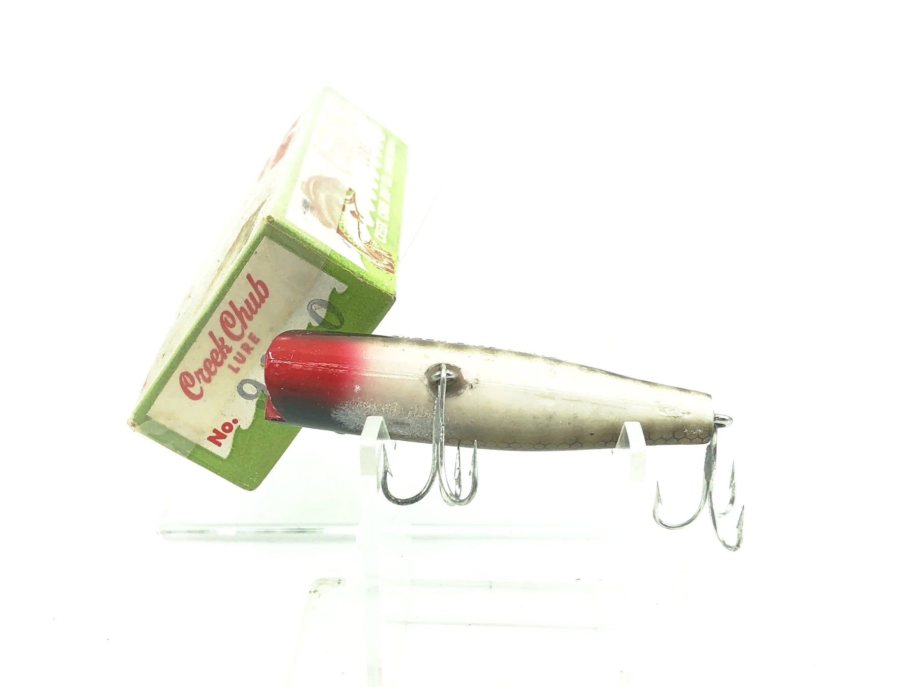 Creek Chub 9000 Spinning Darter, Pikie Color 9000, with Box. About 2 1/4" long. Quality plastic lure here. Box is in good condition. Lure is used with some minor wear and waxing but overall in good condition, see photos. Great classic bait from the former Creek Chub Bait Company.