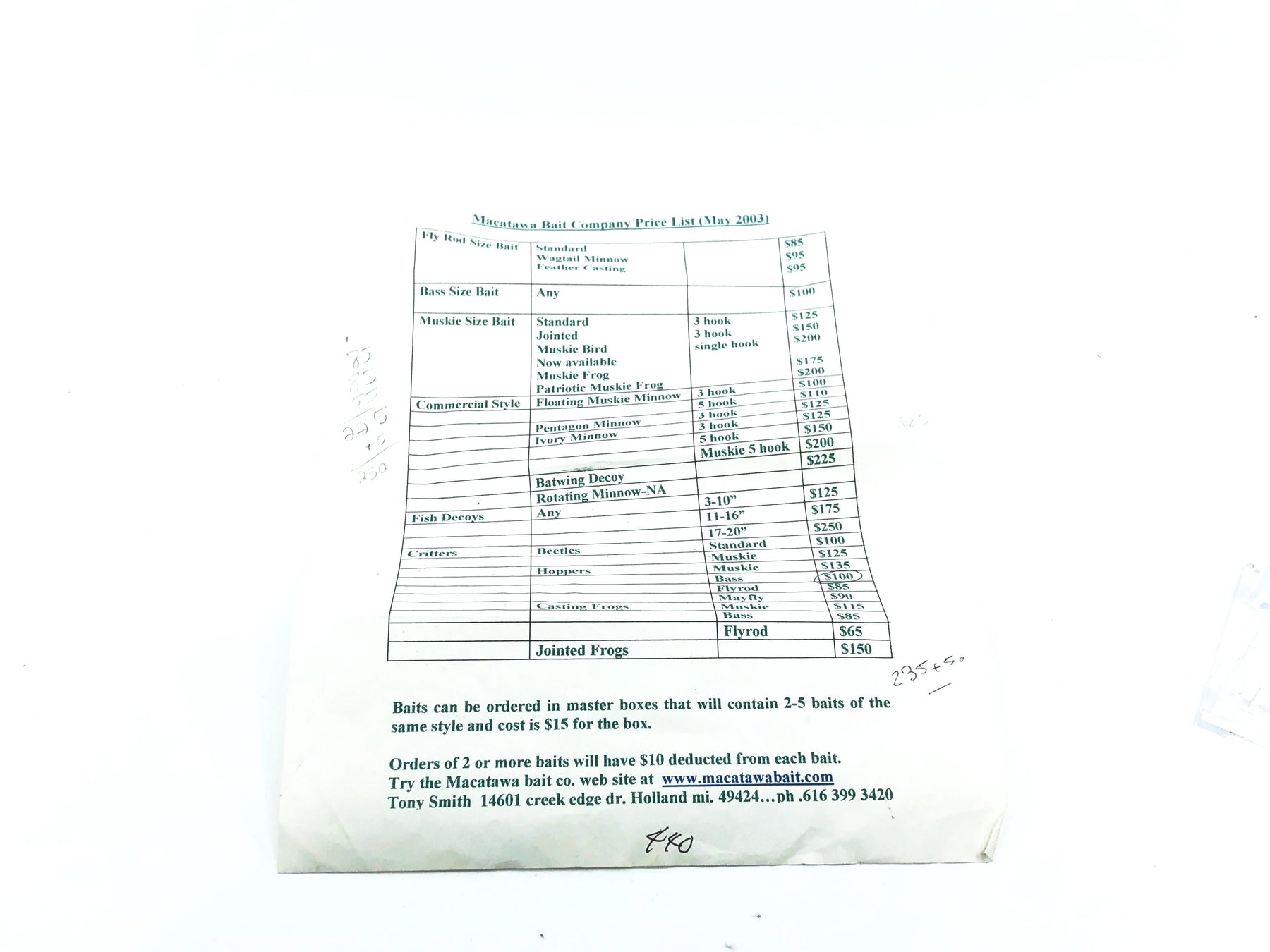 Part of our Macatawa Arizona Collection. What we believe to be the largest privately owned and historically important Macatawa Bait and Tony Smith collection to ever be put up for sale. Just under 300 items that will be individually sold and passed on to a new generation of caretakers and collectors. These items trace back to the early days of duck decoys to the beginning of the Macatawa Bait Company and all the way up to more recent offerings including many custom ordered one of kind decoys and lures. Many of these items have only been sold once and have never changed hands and may never come up for sale again in your lifetime. Now is the time to add some amazing pieces to your collection.