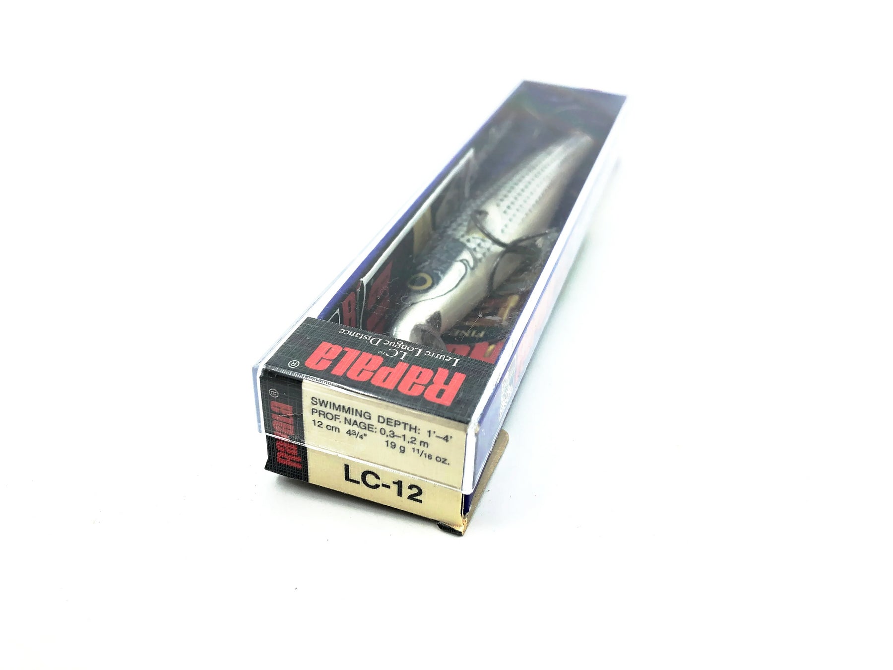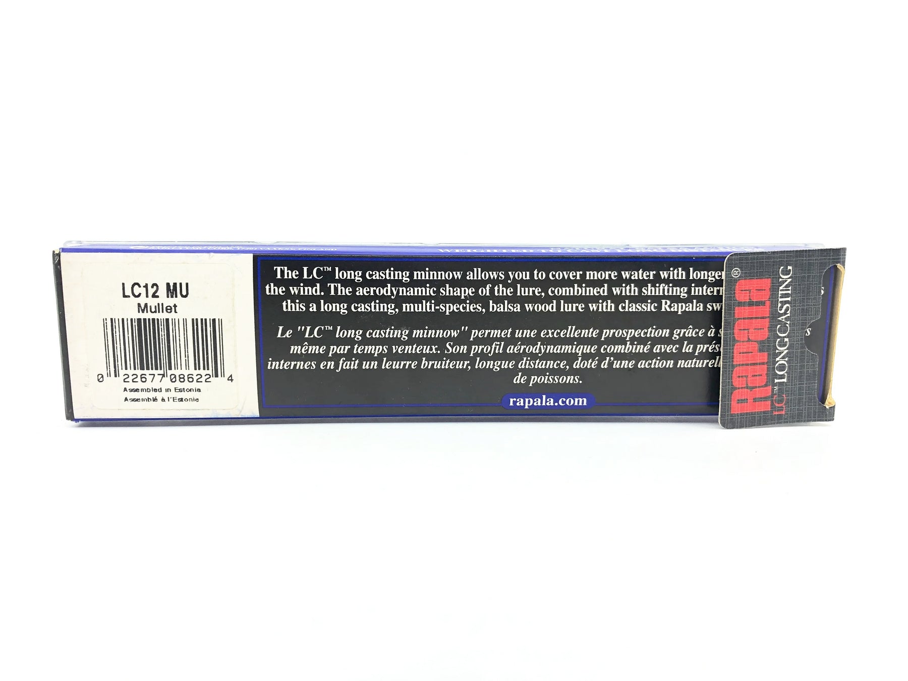 Rapala Long Casting LC-12, MU Mullet Color with Box. Discontinued lure line from around 2003. Lure is about 5" long. Bait is new in box, box is in good condition. Fish or collect this bait, see photos.